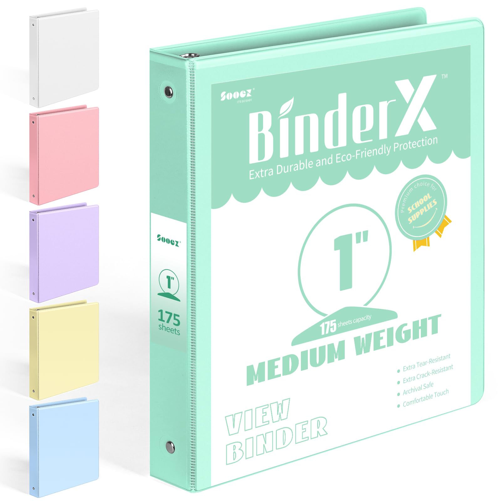 BinderX Extra Durable 3 Ring Binder, Round Ring 1 Inch Binders, Fits 175 Sheets of 8.5x11 Paper, Customizable View Cover with Inside Pockets, Cute 1" Binder, School Supplies for Girls, Green