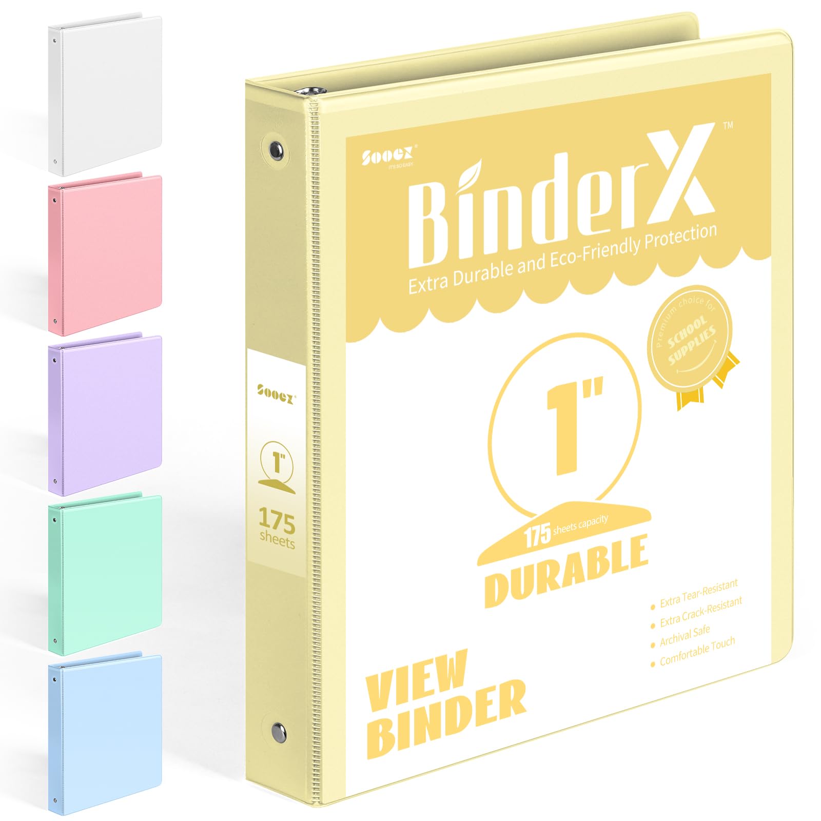 BinderX Extra Durable 3 Ring Binder, Round Ring 1 Inch Binders, Fits 175 Sheets of 8.5x11 Paper, Customizable View Cover with Inside Pockets, Cute 1" Binder, School Supplies for Girls, Yellow