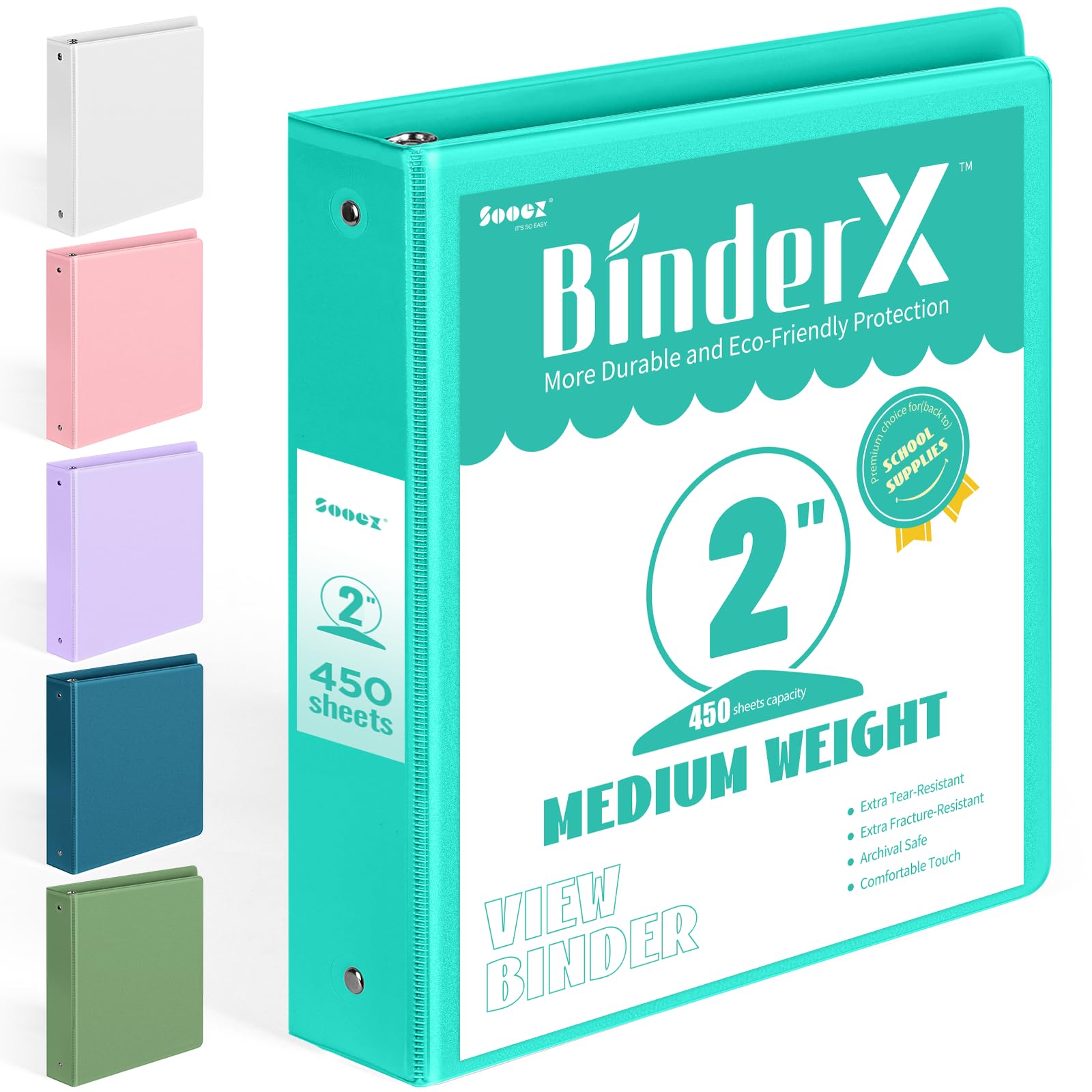 BinderX Extra Durable 3 Ring Binder, Round Ring 2 Inch Binders, Fits 450 Sheets of 8.5x11 Paper, Customizable View Cover with Inside Pockets, Cute 2" Binder, School Supplies for Girls, Green