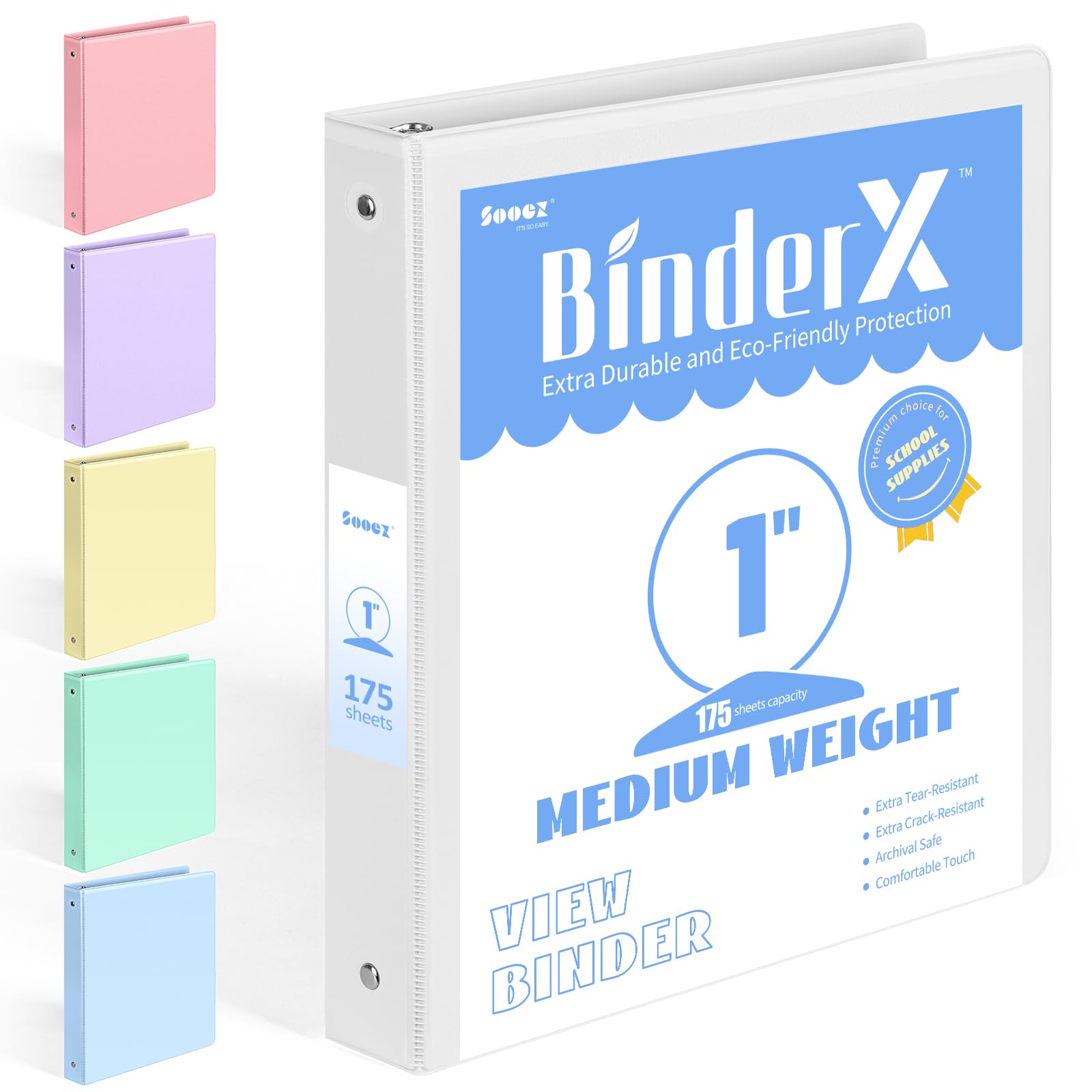 BinderX Extra Durable 3 Ring Binder, Round Ring 1 Inch Binders, Fits 175 Sheets of 8.5x11 Paper, Customizable View Cover with Inside Pockets, Cute 1" Binder, School Supplies for Girls, White