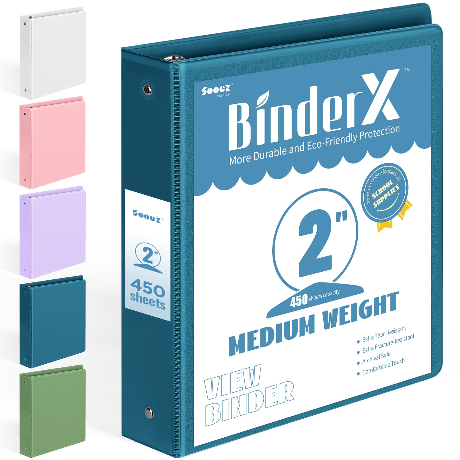 Sooez BinderX Extra Durable 3 Ring Binder, Round Ring 2 Inch Binders, Fits 450 Sheets of 8.5x11 Paper, Customizable View Cover with Inside Pockets, Cute 2" Binder, School Supplies for Girls, Pink
