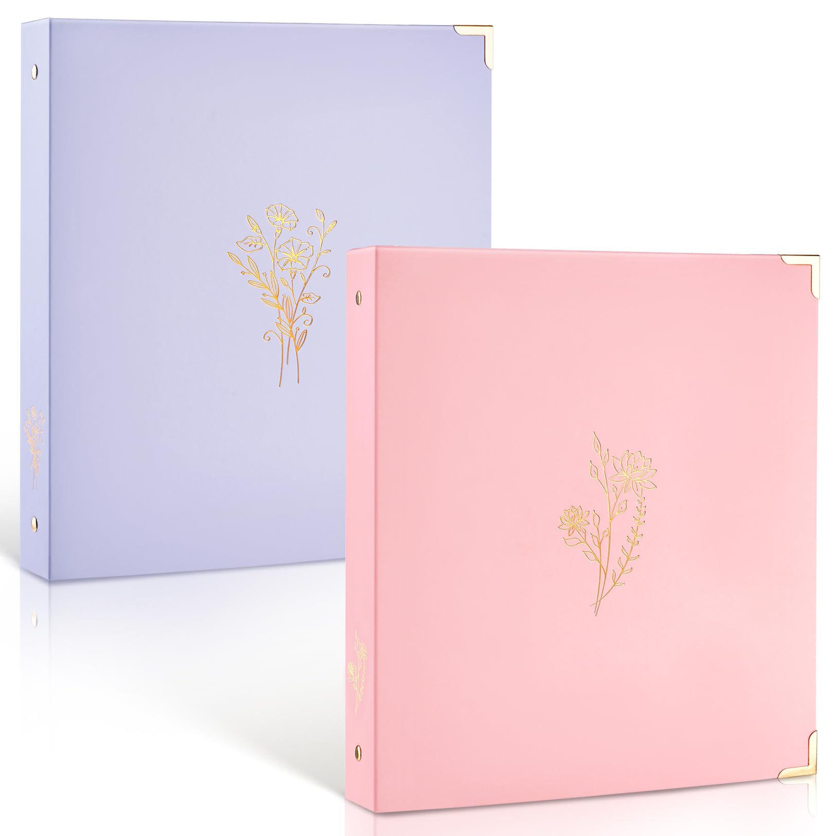 Sooez 2 Pack 3 Ring Binder, Cute 1 Inch Binders with Gold Foil & Metal Corners, Three Ring Recipe Binder, Fits Letter Sized Paper for Women School Home Office Supplies, Pink & Purple