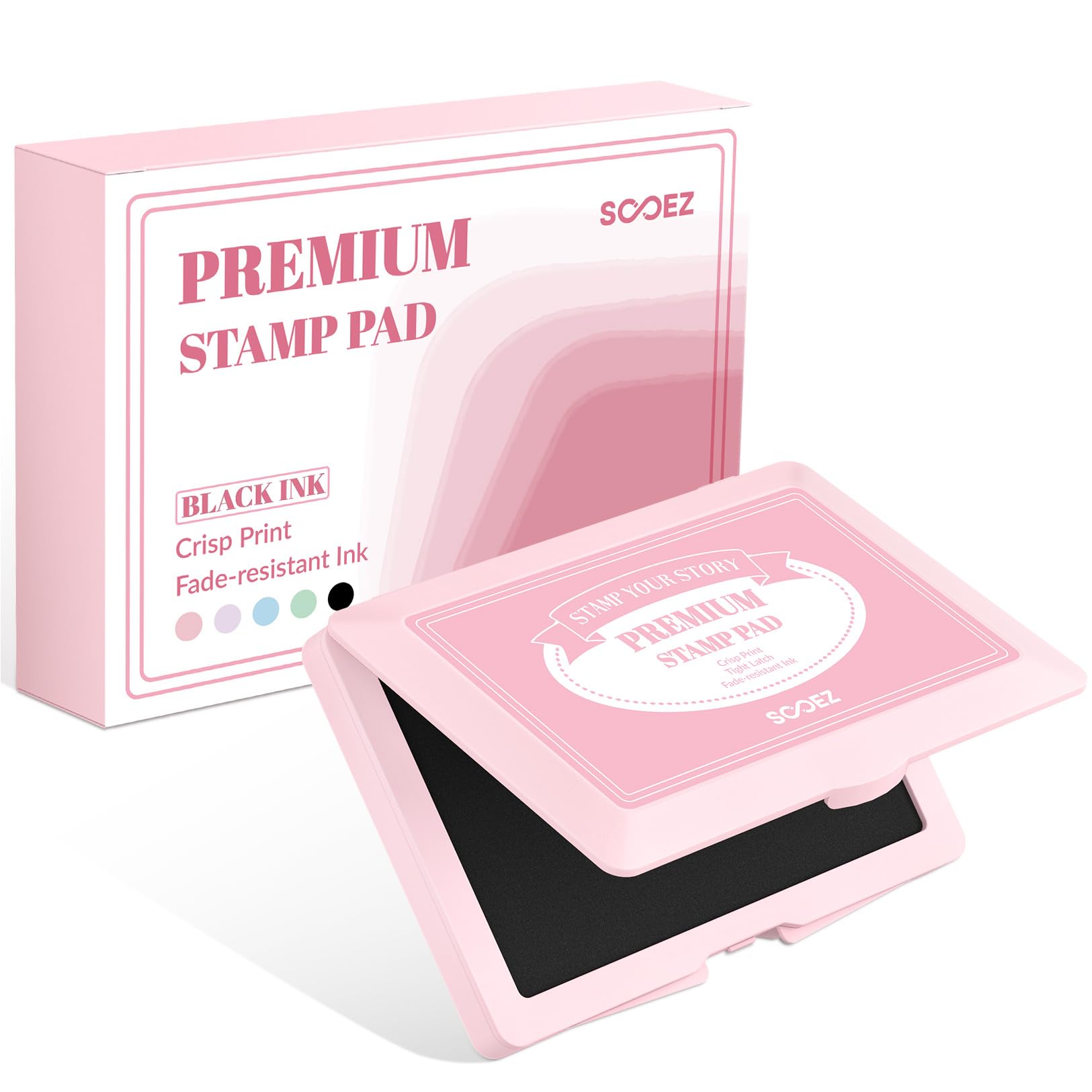 Sooez Black Ink Pad with Snap Closure, Cute Large Stamp Pad for Rubber Stamps, 4.33"x2.76", Premium Felt Pad for Office School, Crafting and Scrapbooking Supplies, Pink Shell - Black Ink