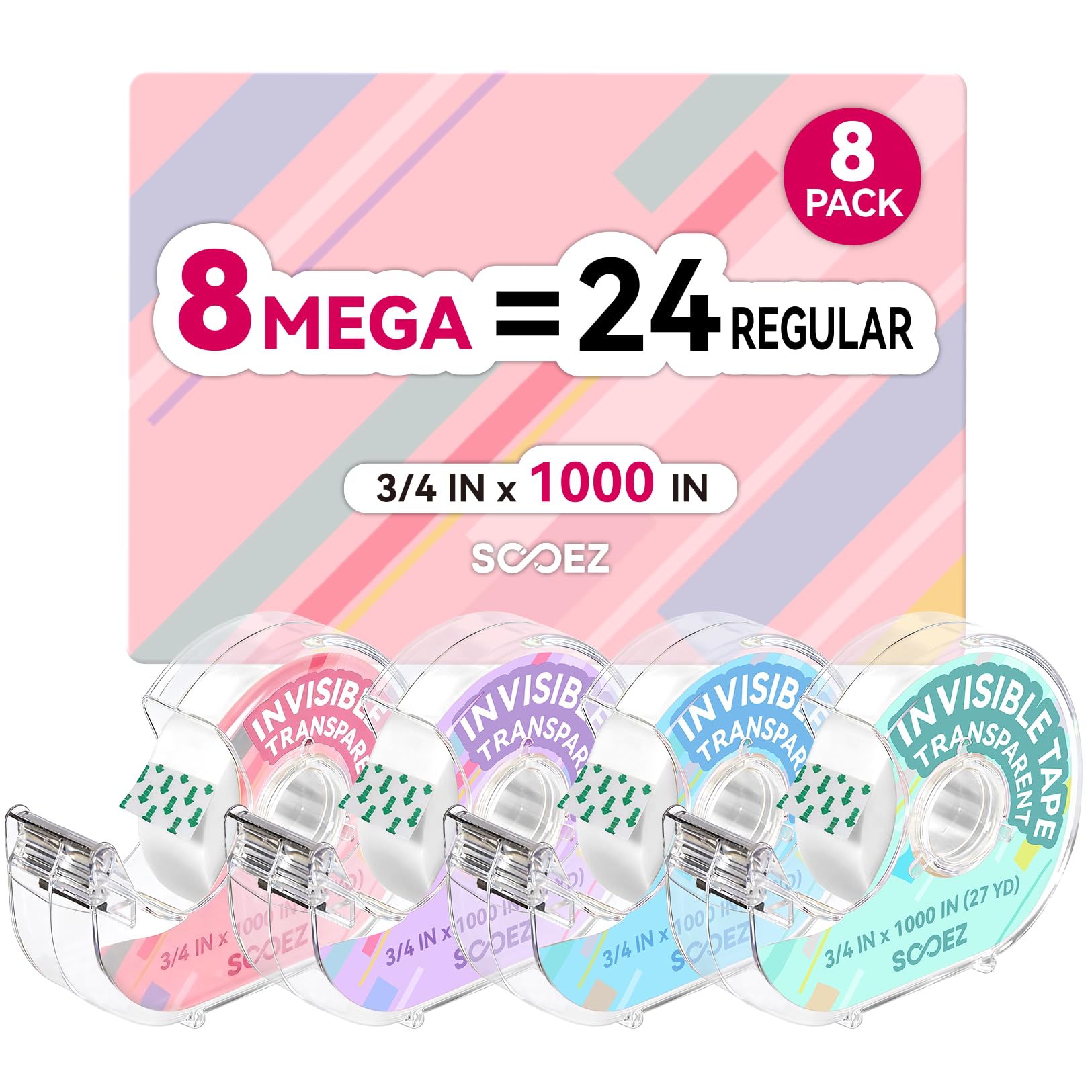 Sooez Invisible Tape for Gift Wrapping, 8 Mega Rolls = 24 Regular, 3/4″x 1000″, 8 Rolls with 8 Tape Dispenser Engineered for Repairing, Clear Tape for Christmas Wrapping, Paper, Office&School Supplies