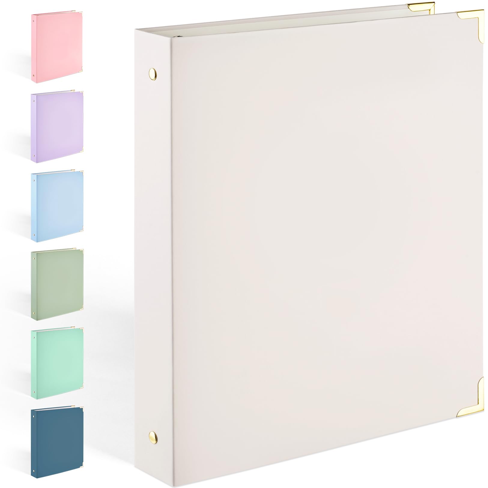 Sooez 3 Ring Binder with Metal Corners, Cute 1 Inch Binders Fits 175 Sheets of Paperwork, Three Ring Recipe Binder with Pocket for Women School Home Office Supplies, Letter Size 8.5" x 11", Beige
