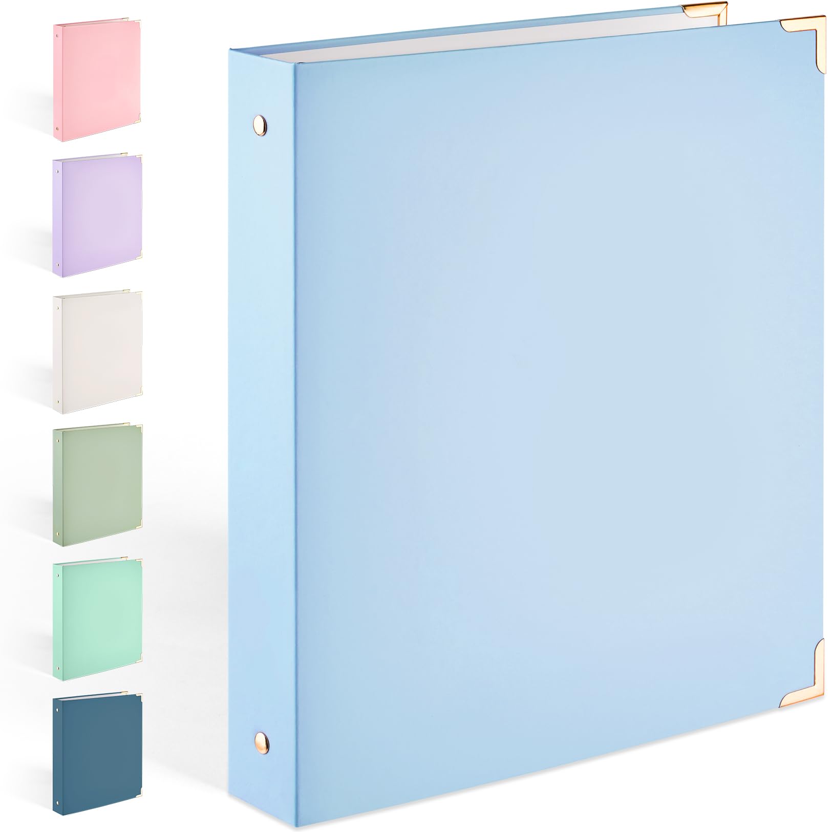 Sooez 3 Ring Binder with Metal Corners, Cute 1 Inch Binders Fits 175 Sheets of Paperwork, Three Ring Recipe Binder with Pocket for Women School Home Office Supplies, Letter Size 8.5x11, Light Blue