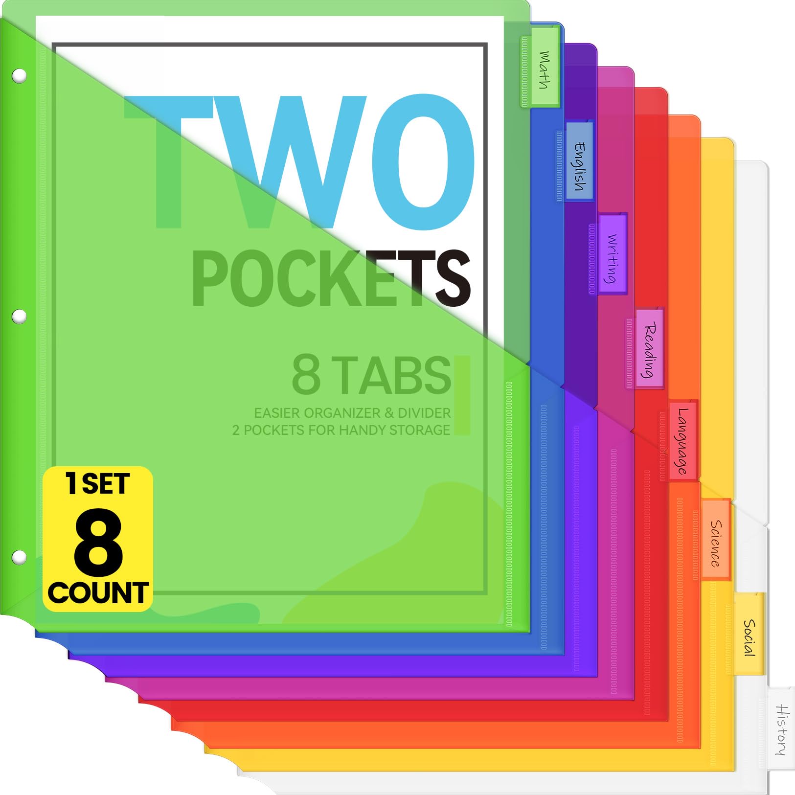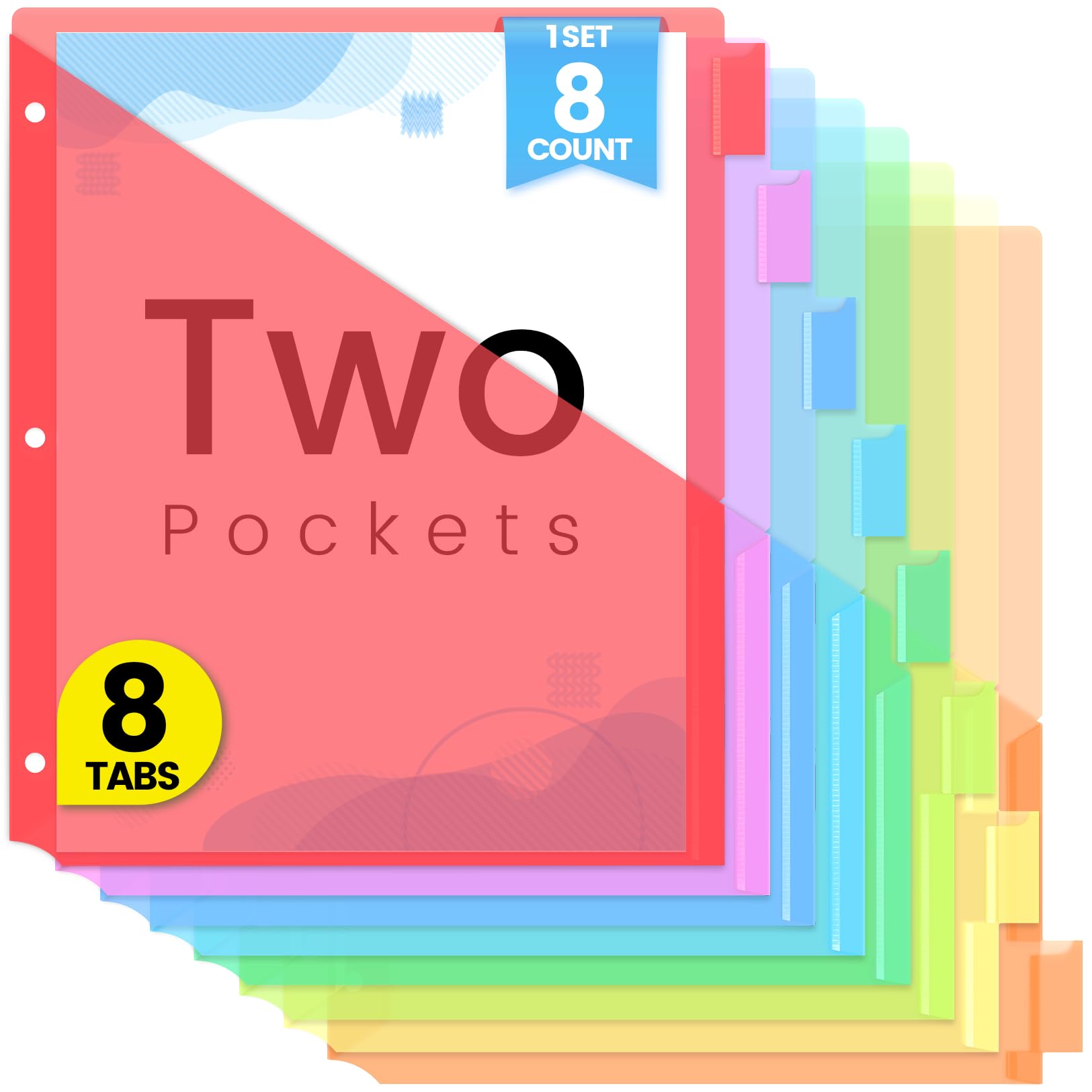 Sooez 8 Count Dividers with Pockets, 8 Tabs Binder Dividers for 3 Ring Binders, Binder Dividers with tabs, Binder Divider with Pockets for US Letter Size, Insertable Big Tabs, Multicolor, Set of 1