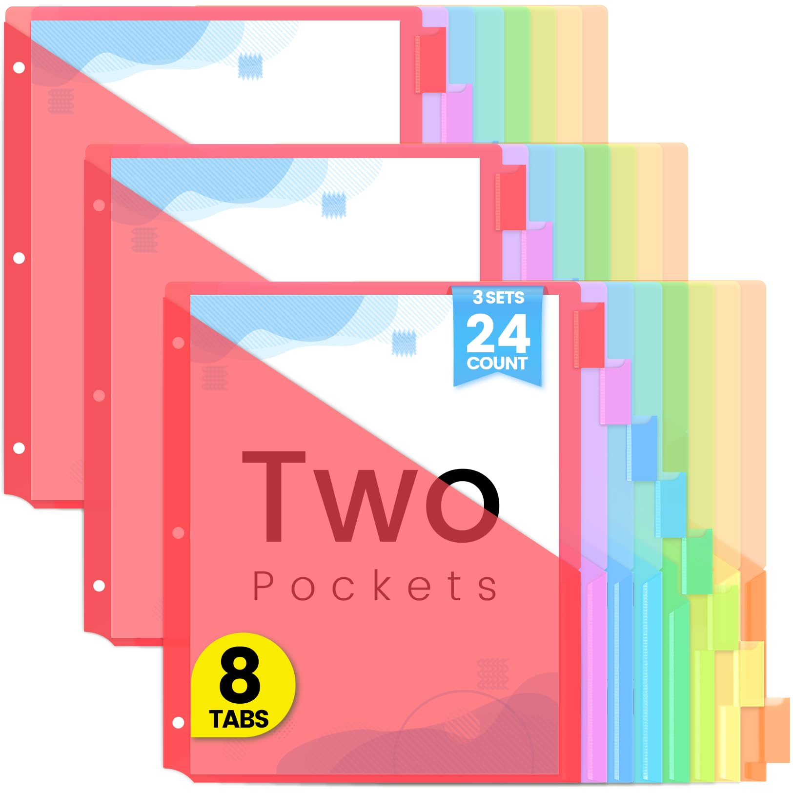 Sooez 24 Count Dividers with Pockets, 8 Tabs Binder Dividers for 3 Ring Binders, Binder Dividers with tabs, Binder Divider with Pockets for US Letter Size, Insertable Big Tabs, Multicolor, Set of 3
