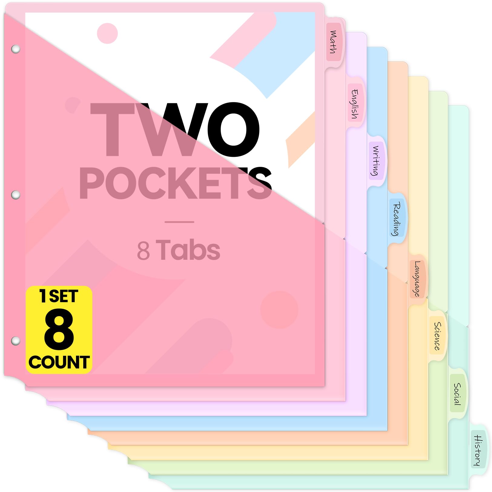 Sooez 8 Count Dividers with 2 Pockets, 8 Tabs Binder Dividers for 3 Ring Binders, Binder Dividers with tabs, Binder Divider with Pockets for US Letter Size, Insertable Big Tabs, Pastels, Set of 1