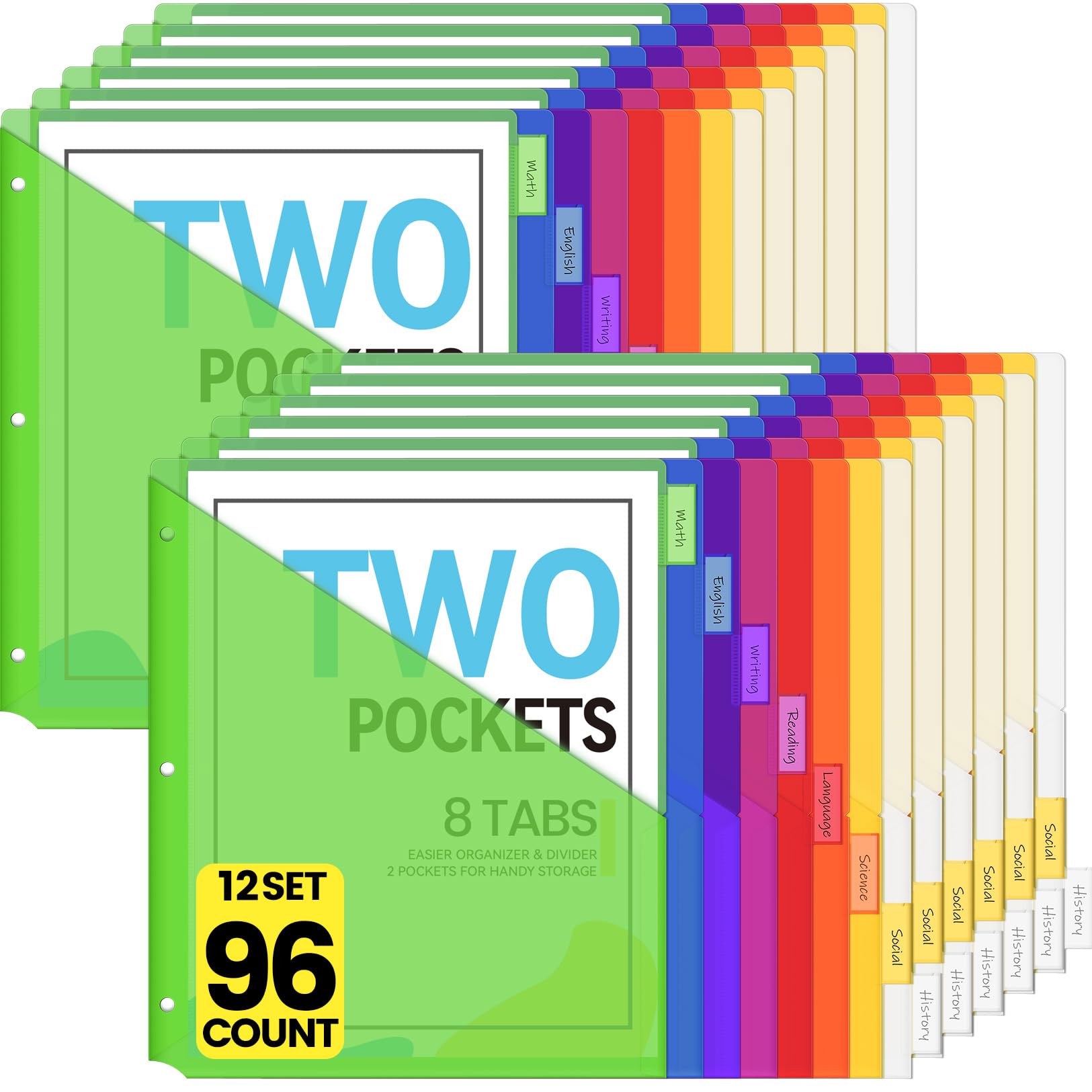 Sooez 96 Count Dividers with Pockets, 8 Tabs Binder Dividers for 3 Ring Binders, Binder Dividers with tabs, Binder Divider with Pockets for US Letter Size, Insertable Big Tabs, Multicolor, Set of 12