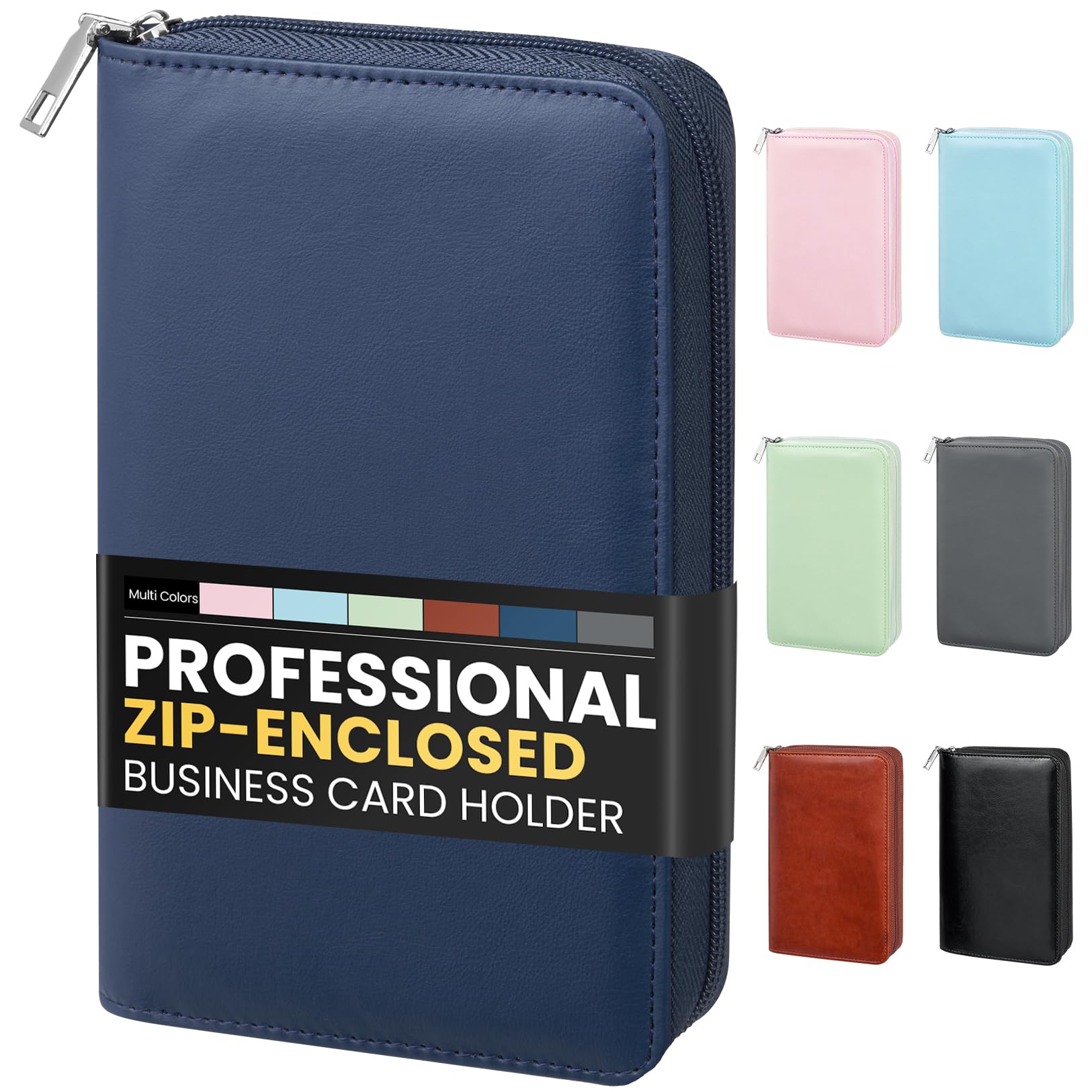 • Sooez Zip-Enclosed Business Card Holder Organizer, Professional Credit Card Case Book for Women Men, 240 Capacity, Premium Vegan Leather Gift Card Organizer Storage, Business Card Wallet, Navy Blue