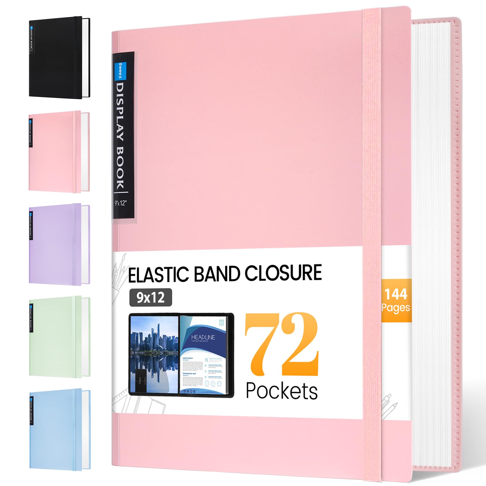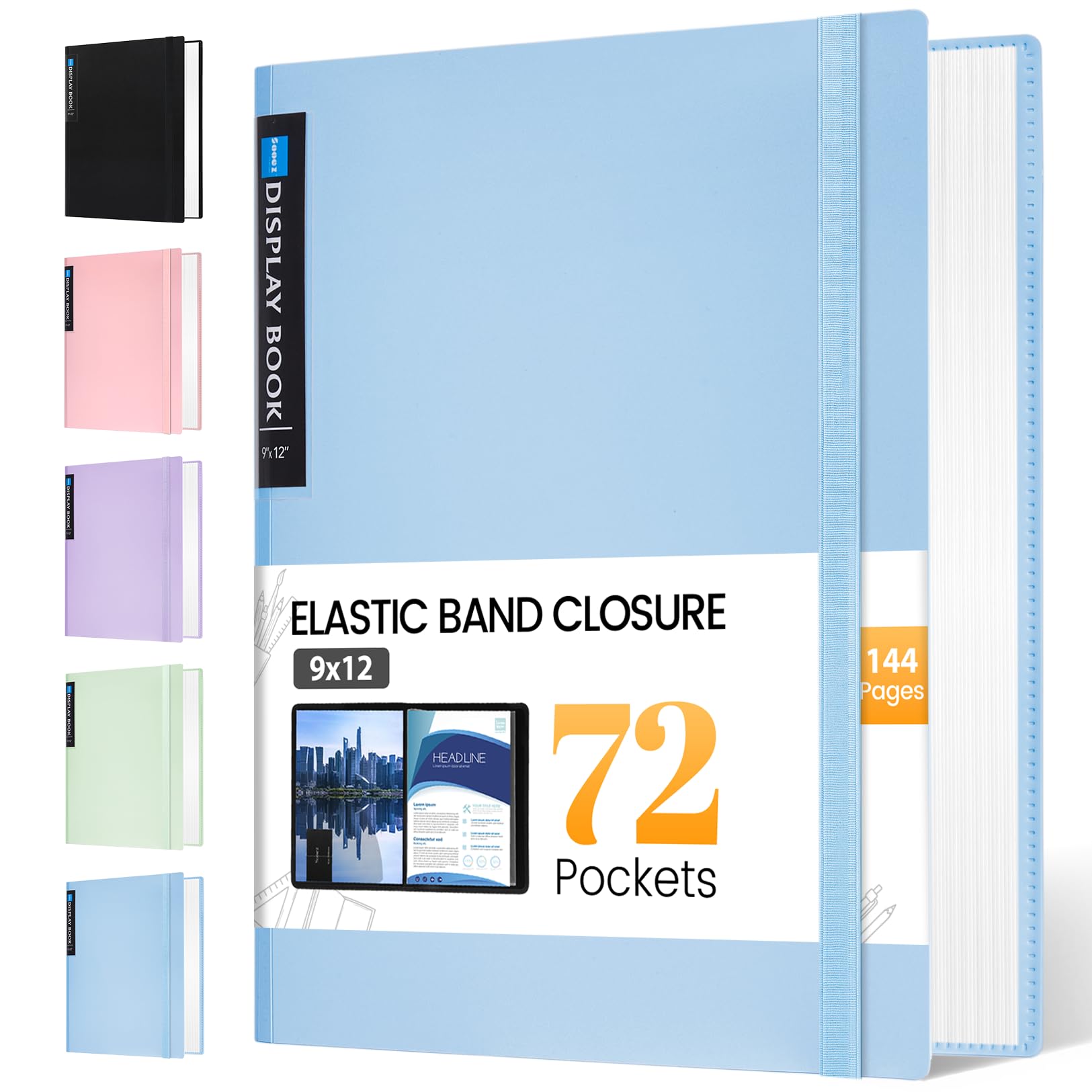 • Sooez Art Portfolio 9"x12", 72 Pockets Large Portfolio Folder Display 144 Pages, Heavy Duty Binder with Plastic Sleeves&Elastic Band, Presentation Book with Clear Sheet Protector for Artwork Organizer