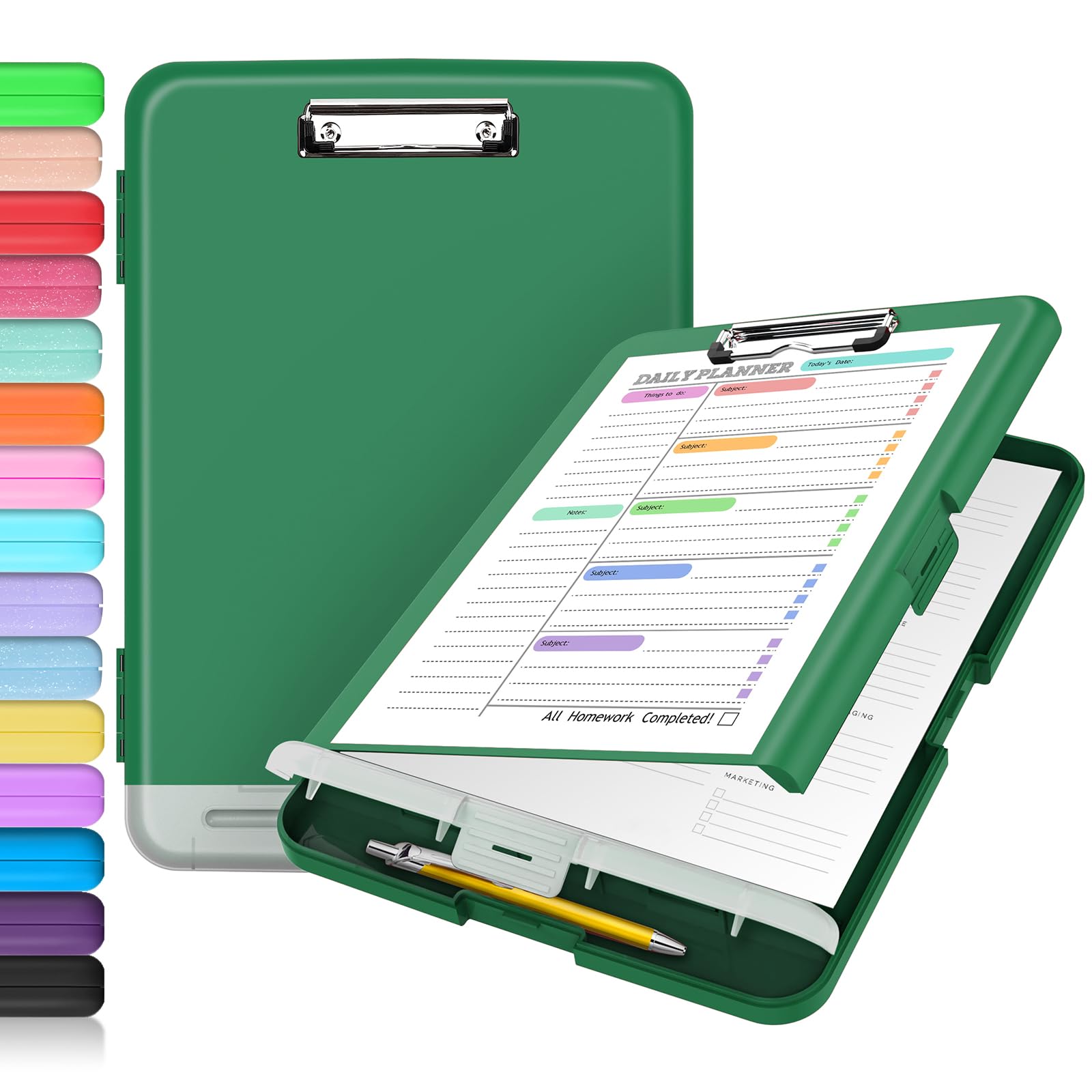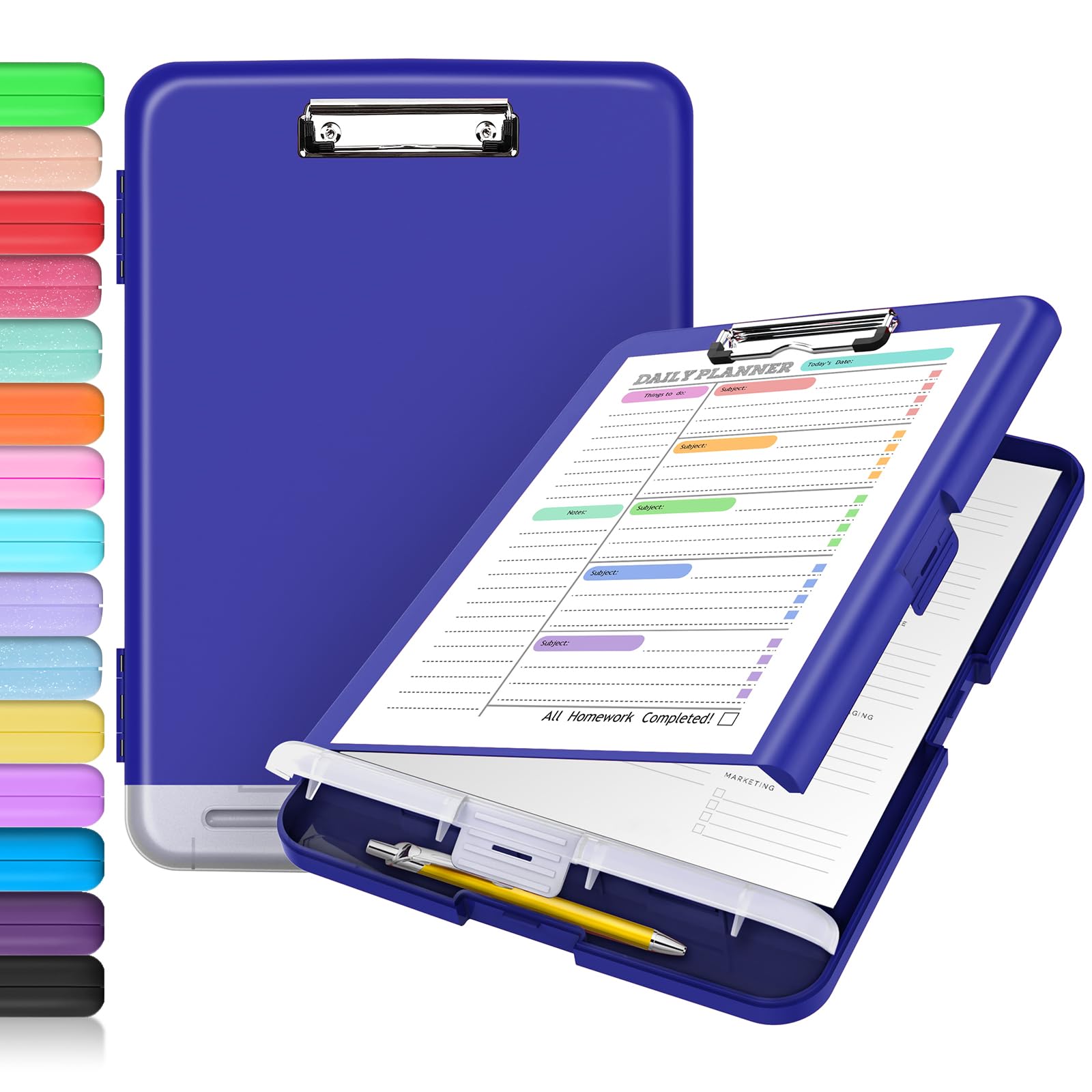 Sooez Clipboard with Storage, Clip Board 8.5 x 11 with Pen Holder, Plastic Organization Case Box for Letter Legal A4 Size Paper, Low Profile Clip, Nurses Teachers Must Haves, School & Office Supplies