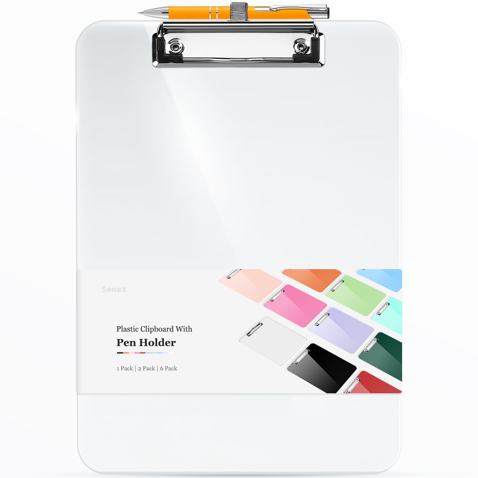 Sooez Plastic Clipboard with Pen Holder, [10% Thicker] Clip Boards 8.5x11 with Low Profile Clip, Cute Hanging Clipboard, Standard Letter Size A4 for Women Teacher, Office & School Supplies