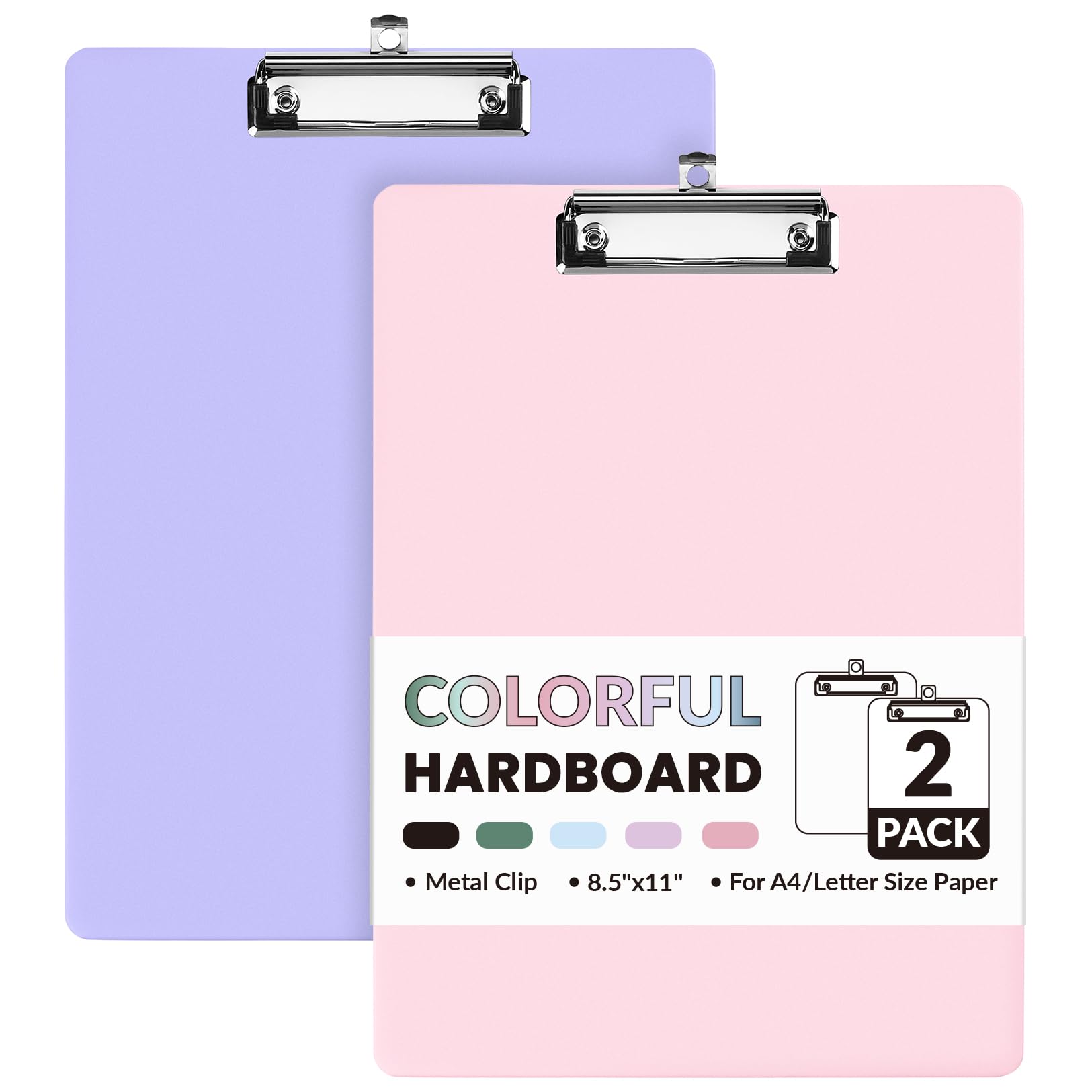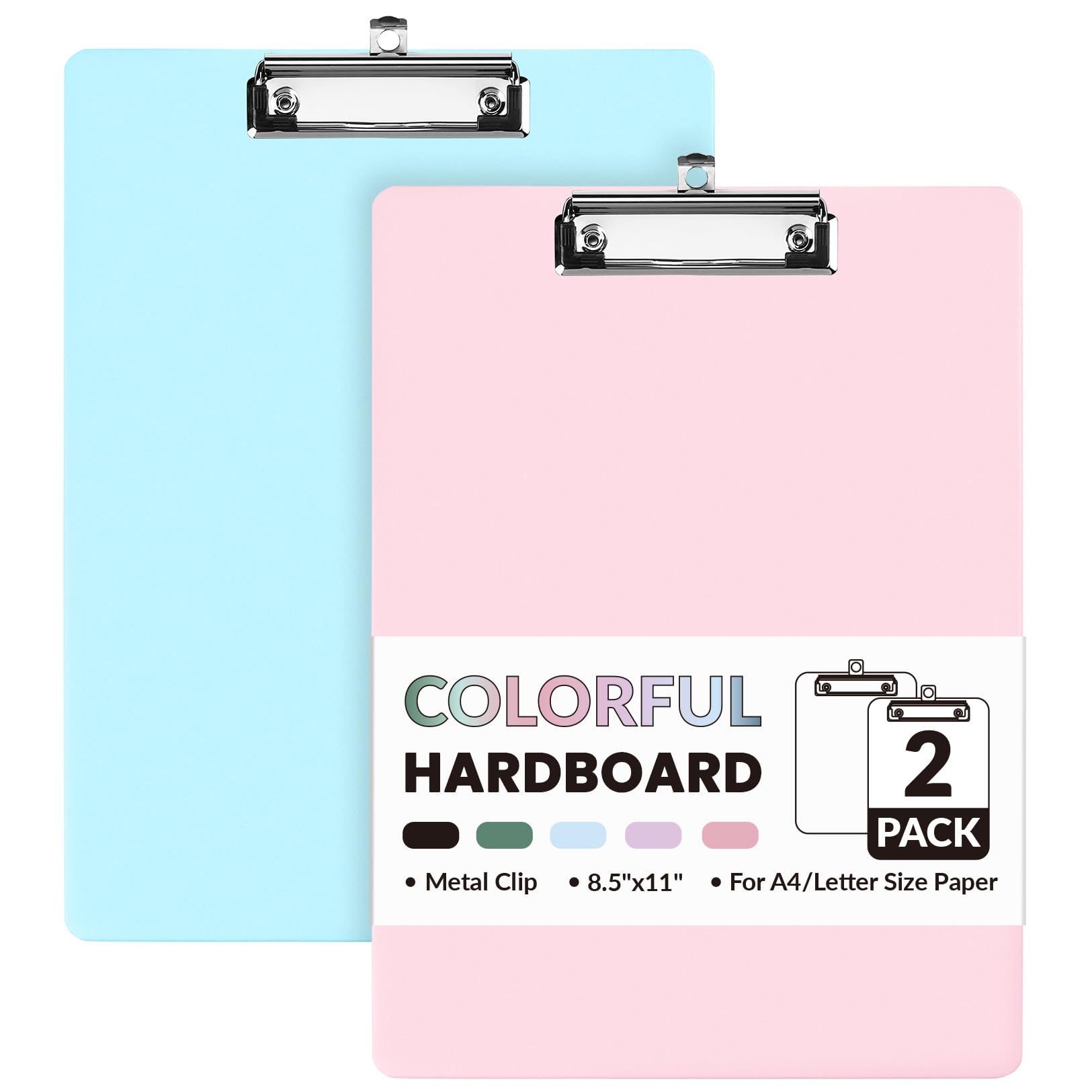 Sooez 2 Pack Clipboard, Colored Cardboard, Hardboard Clip Boards 8.5 x 11, Clipboards with Low Profile Clip, Cute A4/Letter Size Paper Hanging Writing Board for Office Classroom, School Supplies