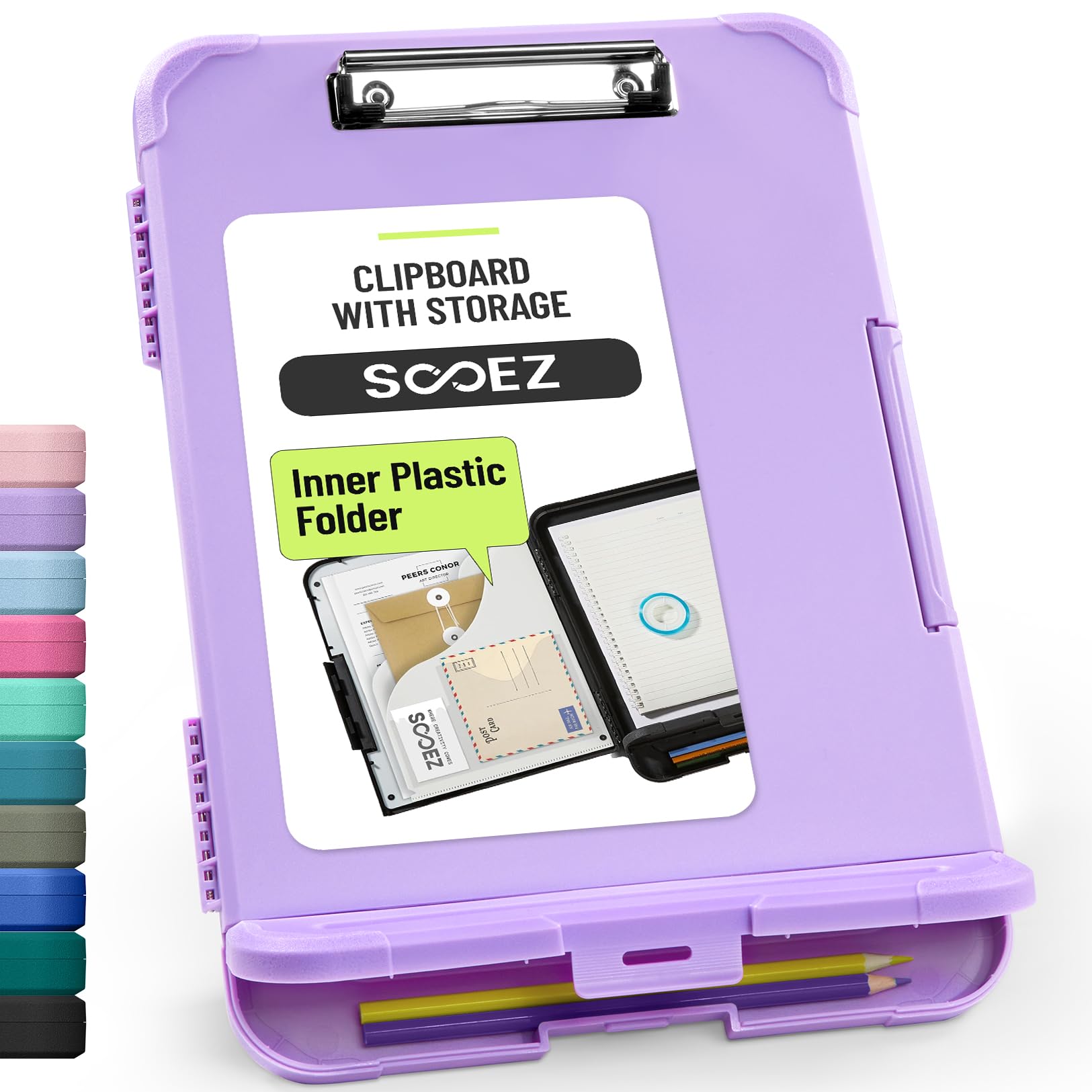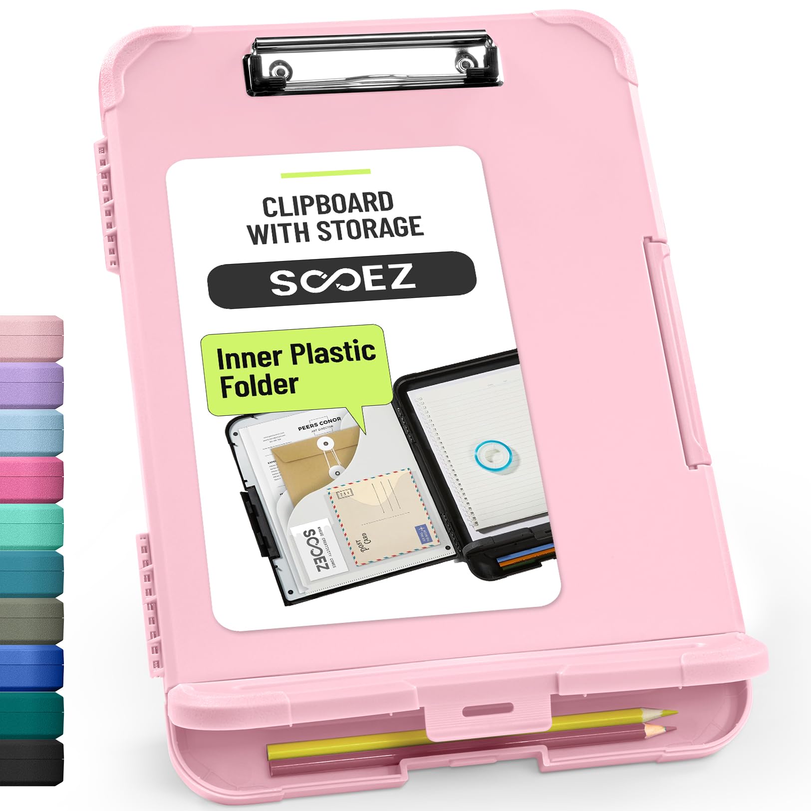 Sooez Clipboard with Storage, High Capacity Nursing Clip Board 8.5 x 11 with Pen Holder & Low Profile Clip, Plastic Clipboards Case Box, Teacher Must Haves School Office Supplies,Letter Size/ A4
