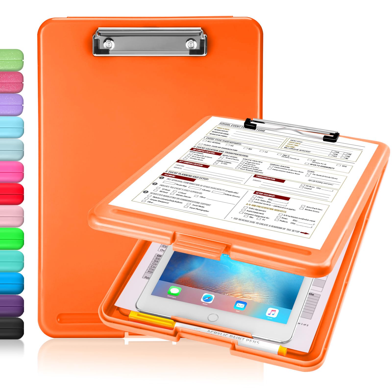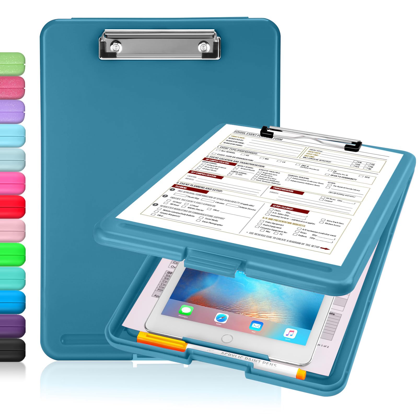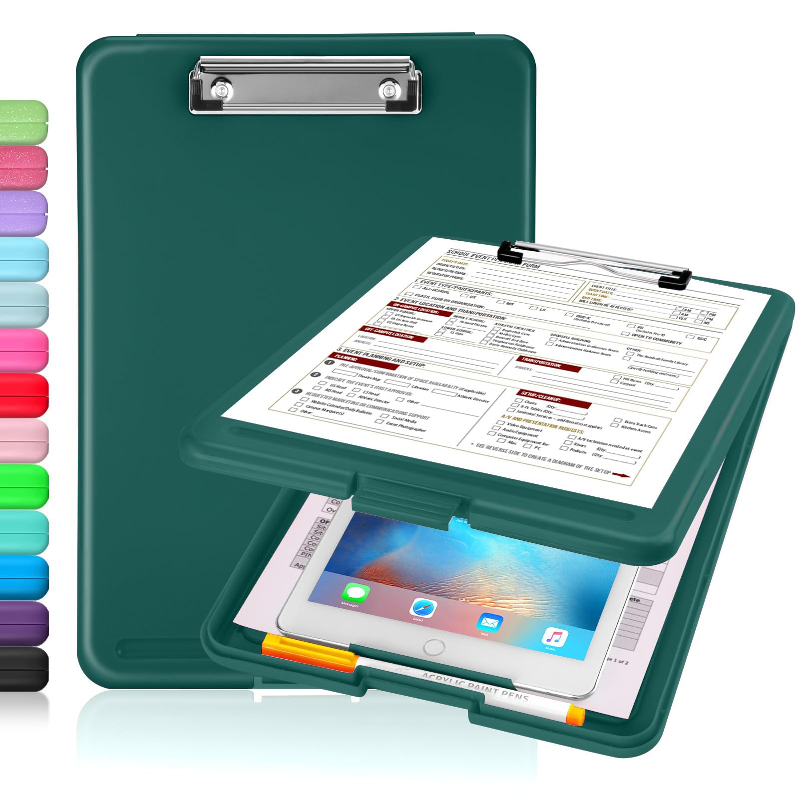 Sooez Clipboard with Storage, Plastic Storage Clipboards with Low Profile Clip, Nursing Clip Boards Foldable, Hanging Clipboard Case for Work, Teacher, Classroom Must Haves, Office School Supplies