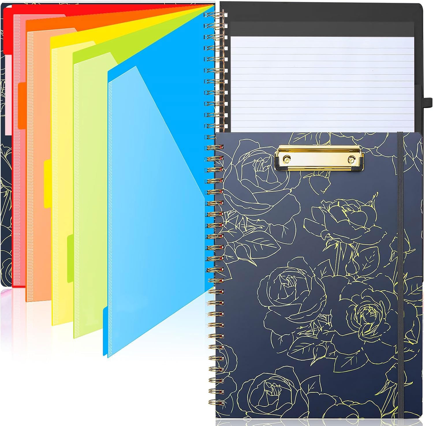 Sooez Clipboard Folio with Refillable Notepad, Folder with 10 Storage Pockets for Letter Size, Spiral Clipboard Notebook, Cute Portfolio for School, Office & Nursing