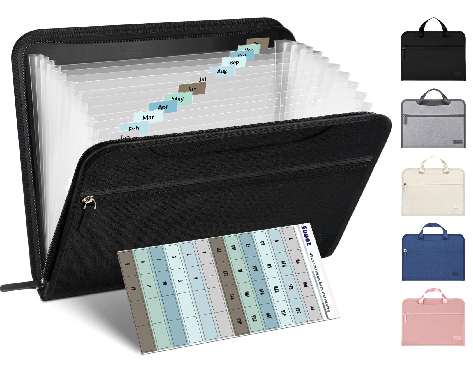Sooez Heavy Duty Accordion File Organizer with Hidden Handle, Portable 12 Pockets Expanding File Folders, Cloth Monthly Bills Receipt Organizer for Letter/A4, School Classroom Home & Office Supplies