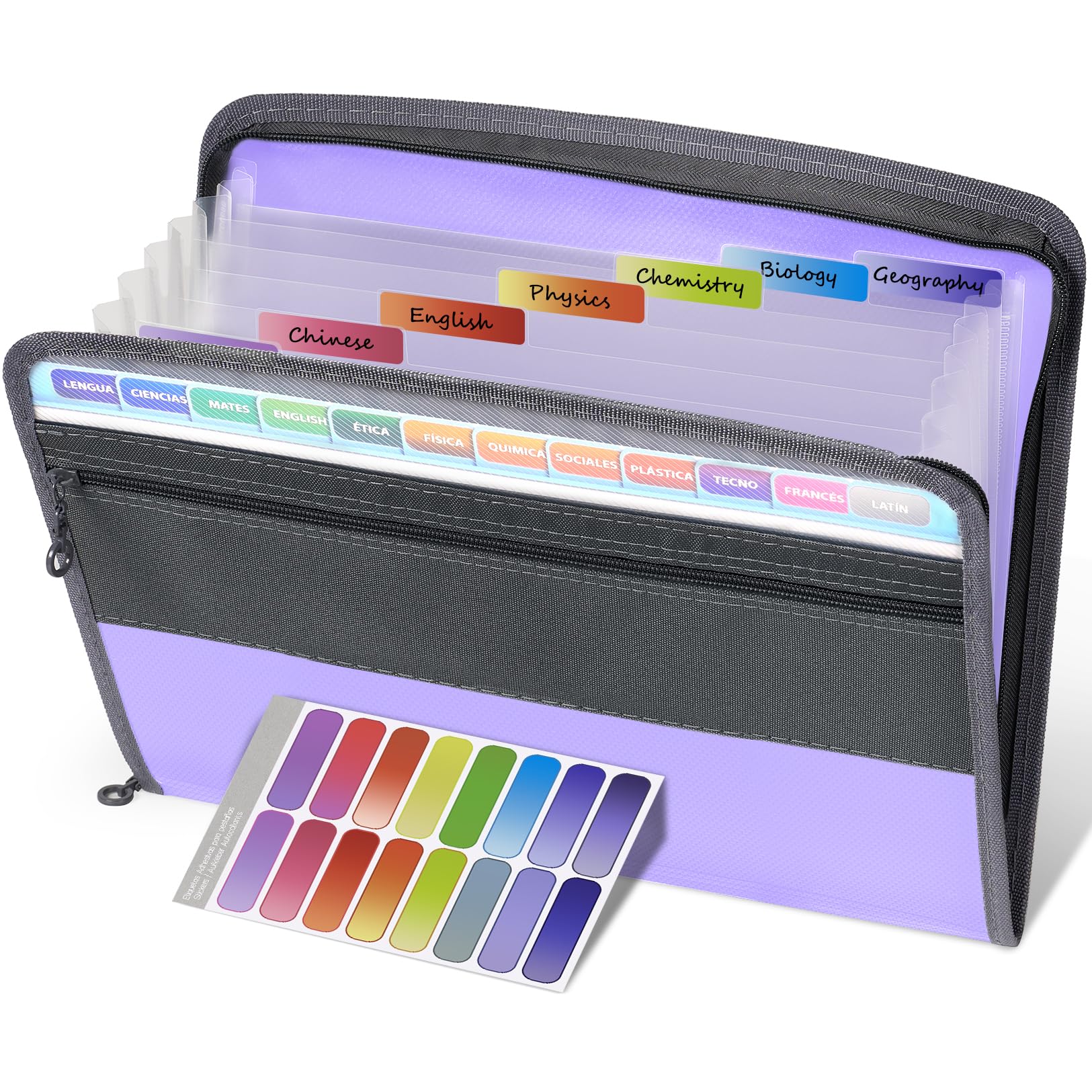 Sooez Accordion File Organizer with Safe Zipper, 8 Pocket Expanding File Folder with Front Pencil Pouch, Portable Monthly Paper Bill Tax Receipt Organizer, School Office Supplies, Letter Size, Purple