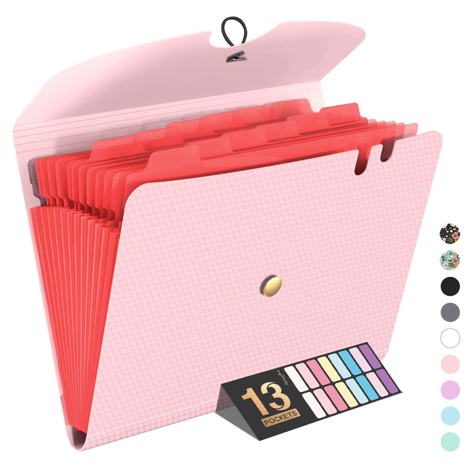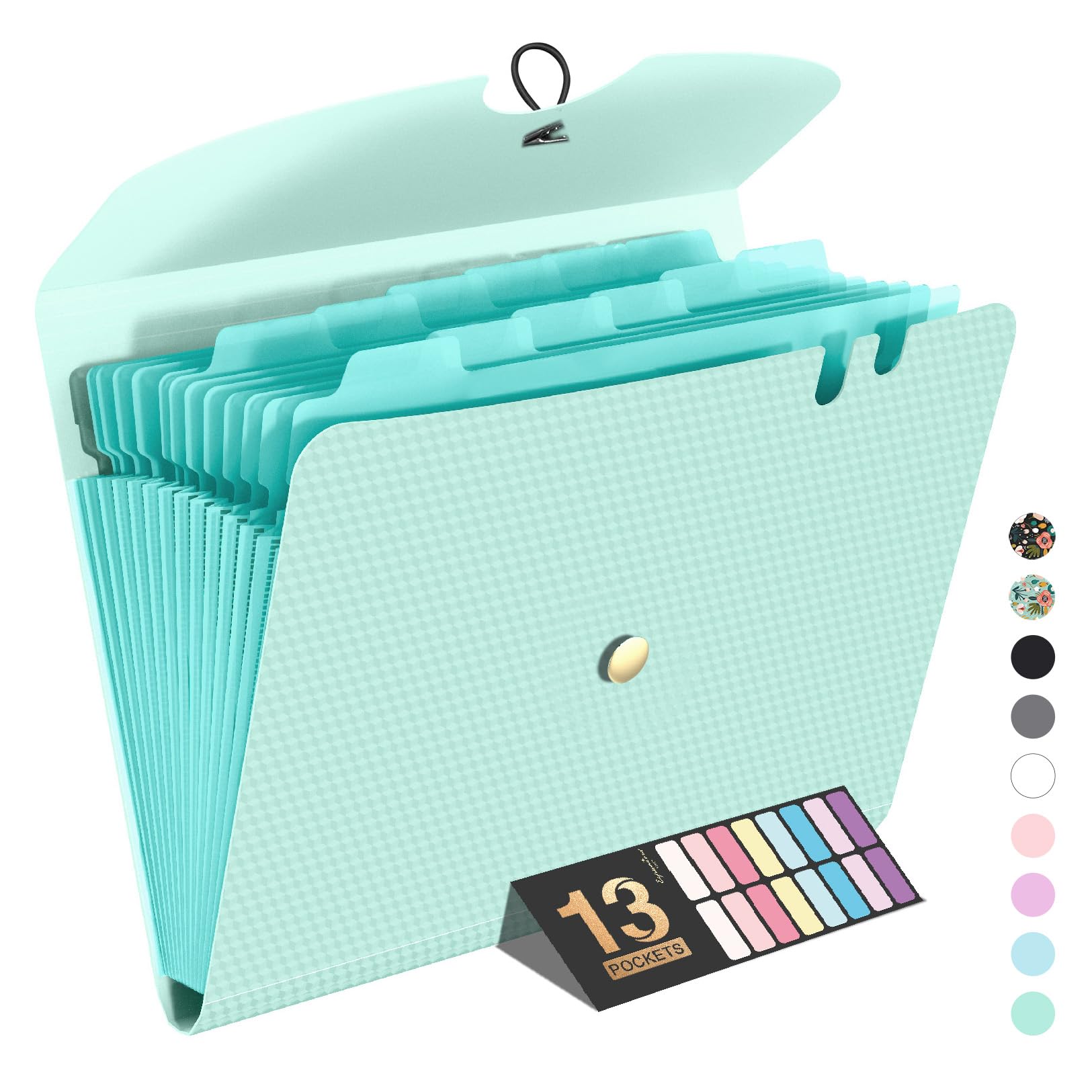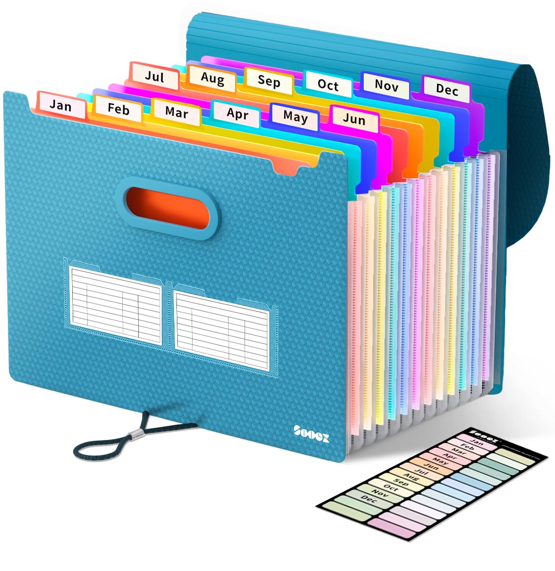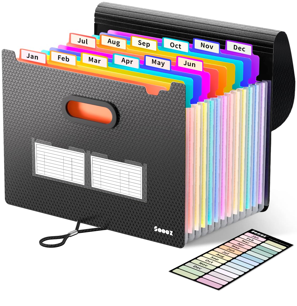Sooez Expanding File Folder, 13 Pocket Accordion File Organizer, Monthly Expandable File Folder for Documents with Labels, Portable Bill Receipt Organizer for School Office Supplies, Letter A4 Size