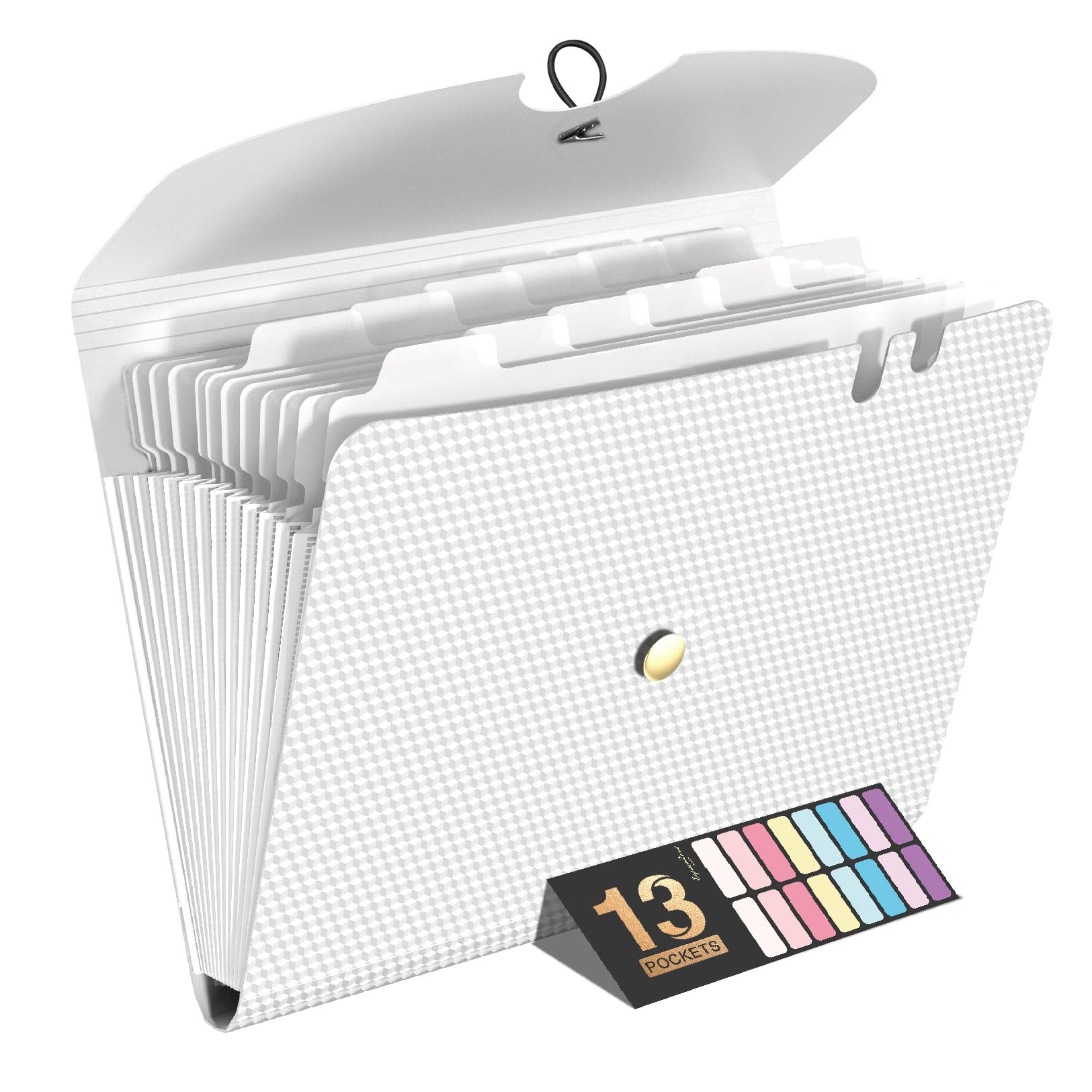 Sooez 24 Pockets Expanding File Folder with Blank Labels, According File Organizer with Expandable Cover, Desktop Accordion Folders Letter A4 Paper Document Storage Organizer, White