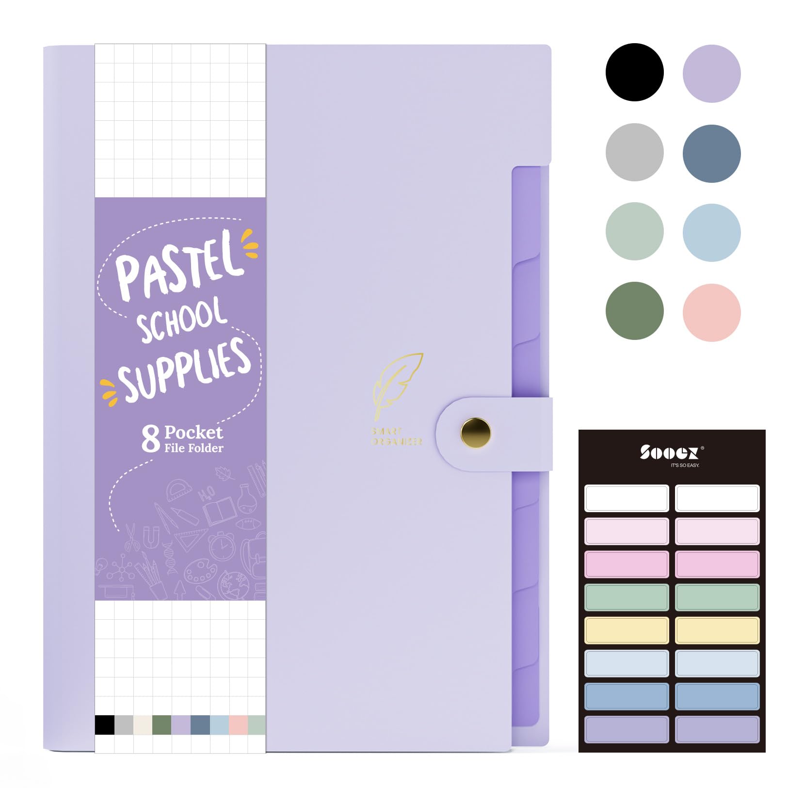 Sooez Aesthetic 8 Pocket Accordion File Organizer, Pastels Expanding File Folder for Important Document with Labels, Portable Receipt Paper Bill Organizer for Office School Supplies, Letter Size Purpl