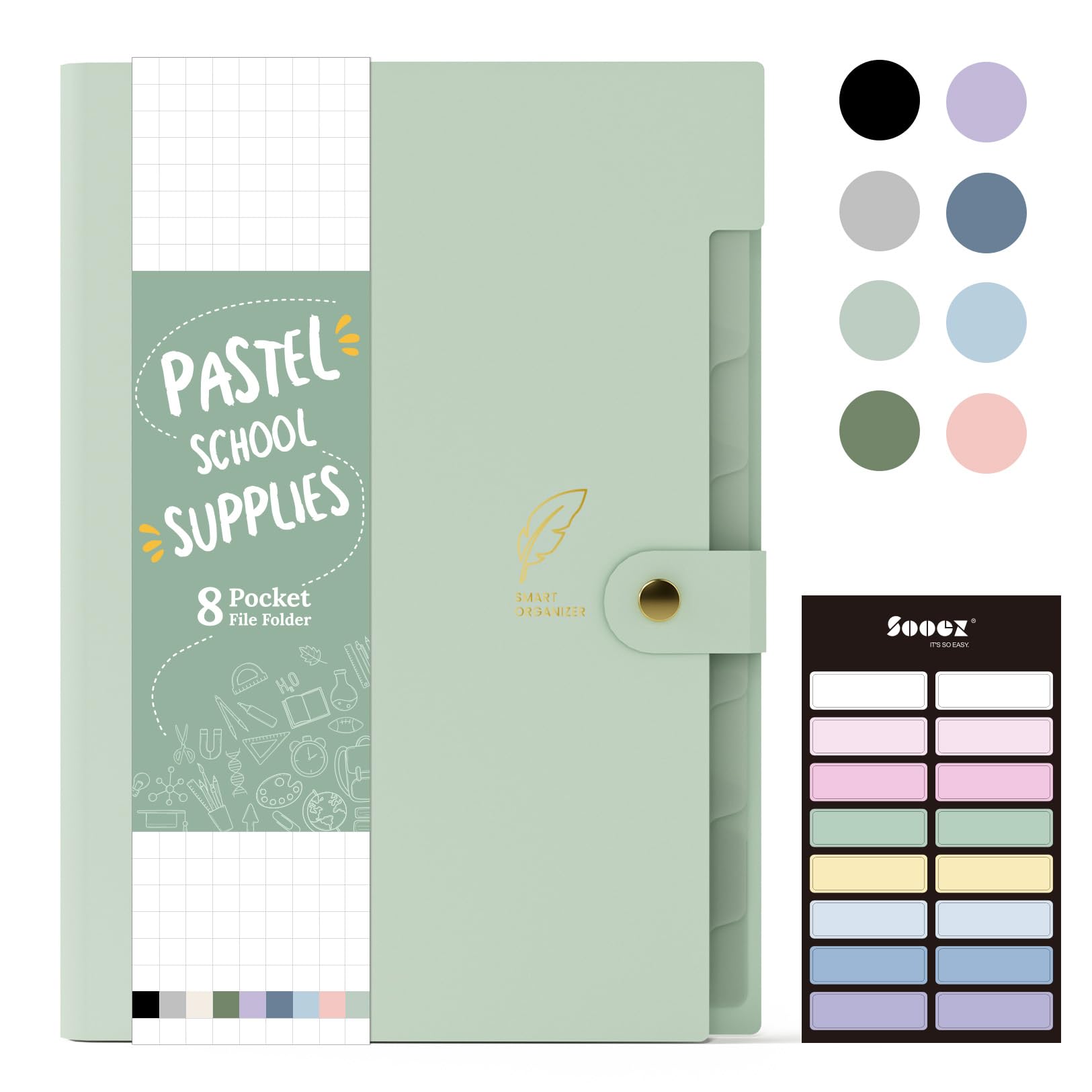 Sooez Aesthetic 8 Pocket Accordion File Organizer, Pastels Expanding File Folder for Important Document with Labels, Portable Receipt Bill Organizer for Office School Supplies, Letter Size Light Green
