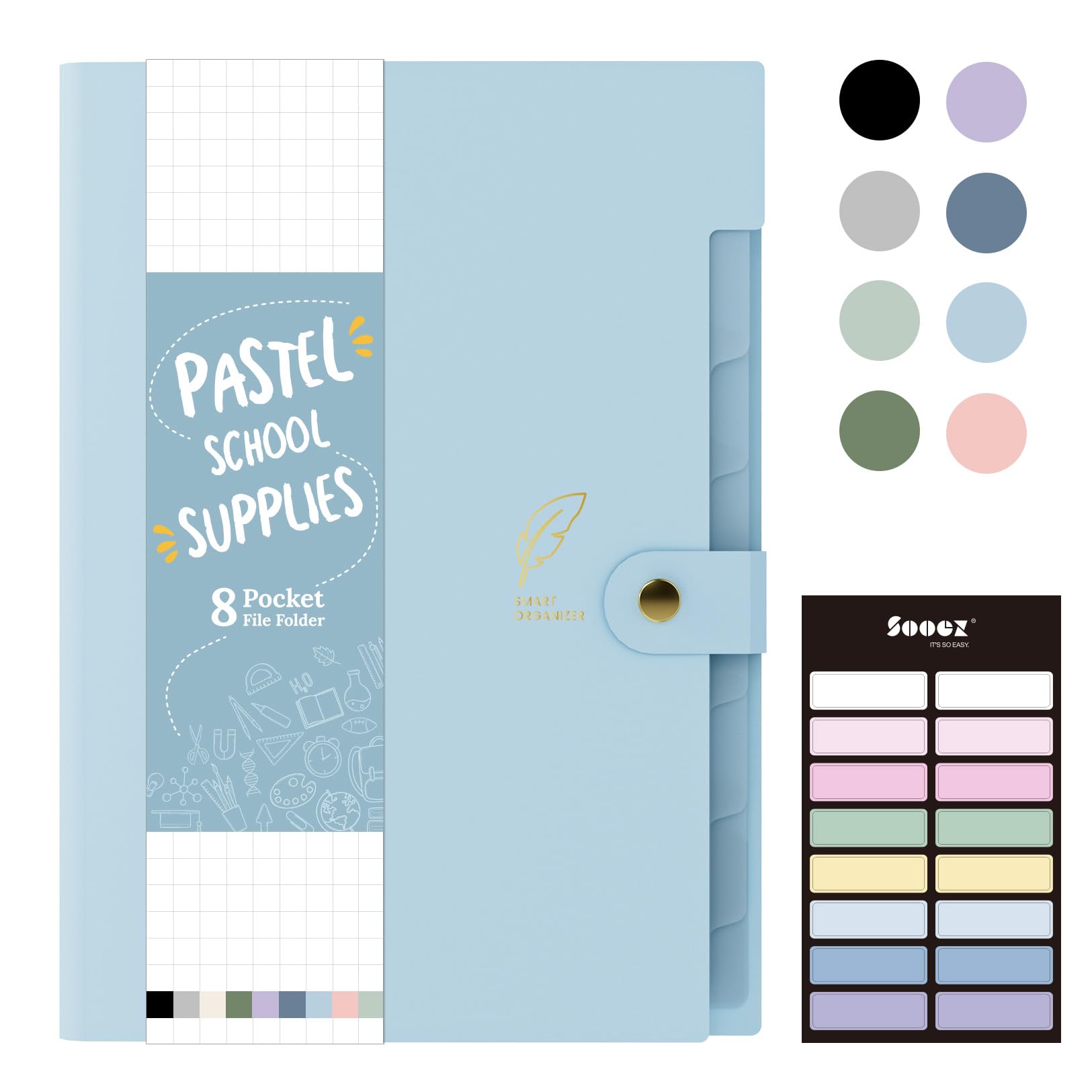 Sooez Aesthetic 8 Pocket Accordion File Organizer, Pastels Expanding File Folder for Important Document with Labels, Portable Receipt Bill Organizer for Office School Supplies, Letter Size Light Blue