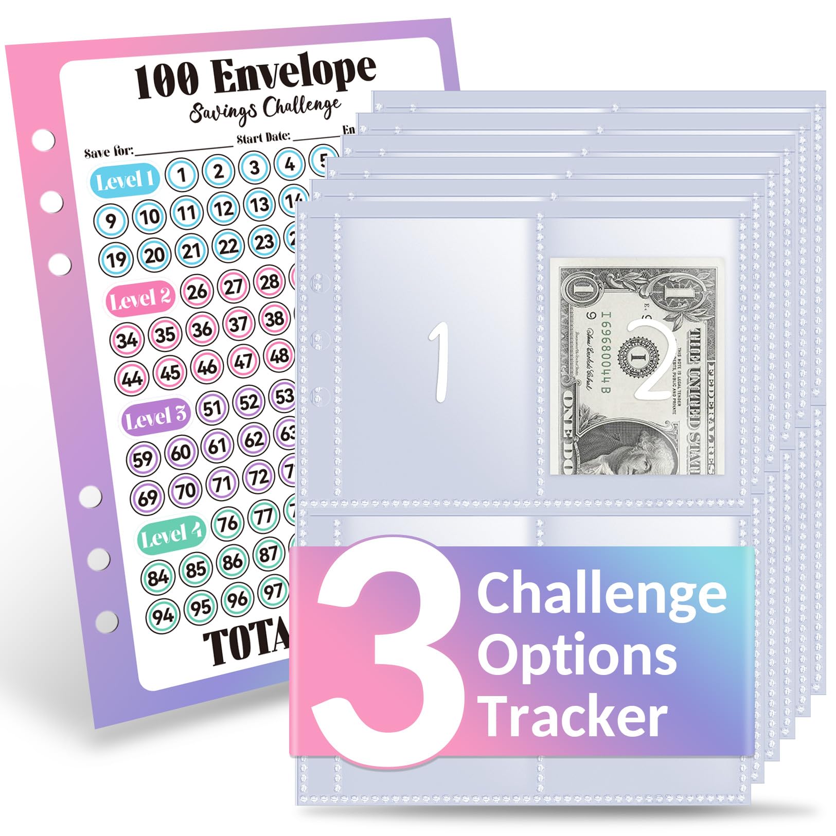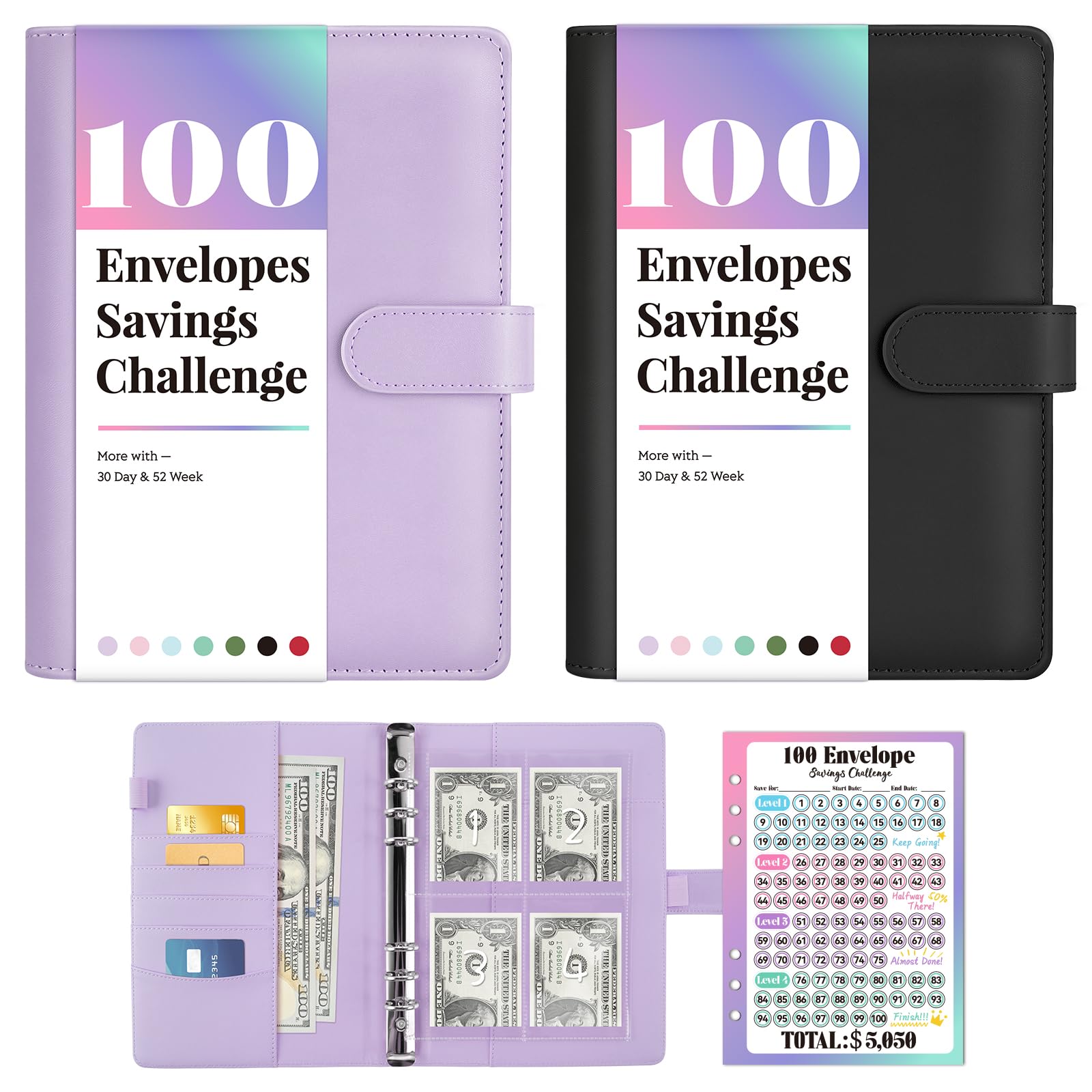 2PCS 100 Envelopes Money Saving Challenge, Savings Challenges Book with Envelopes, Flexible $5050, $2600, $300, Binder with 100 Pocket Pre-Number & Reusable Laminated Tracker