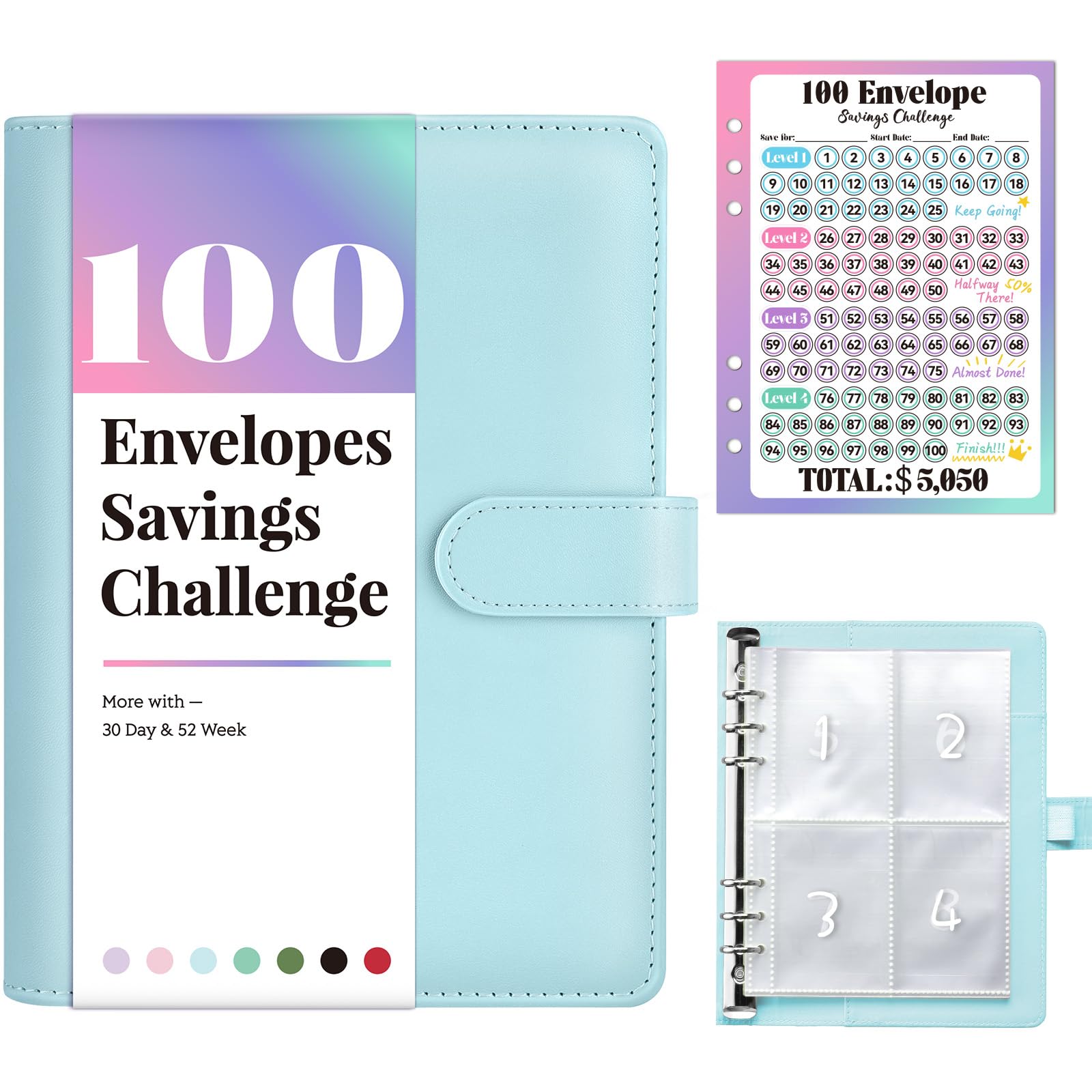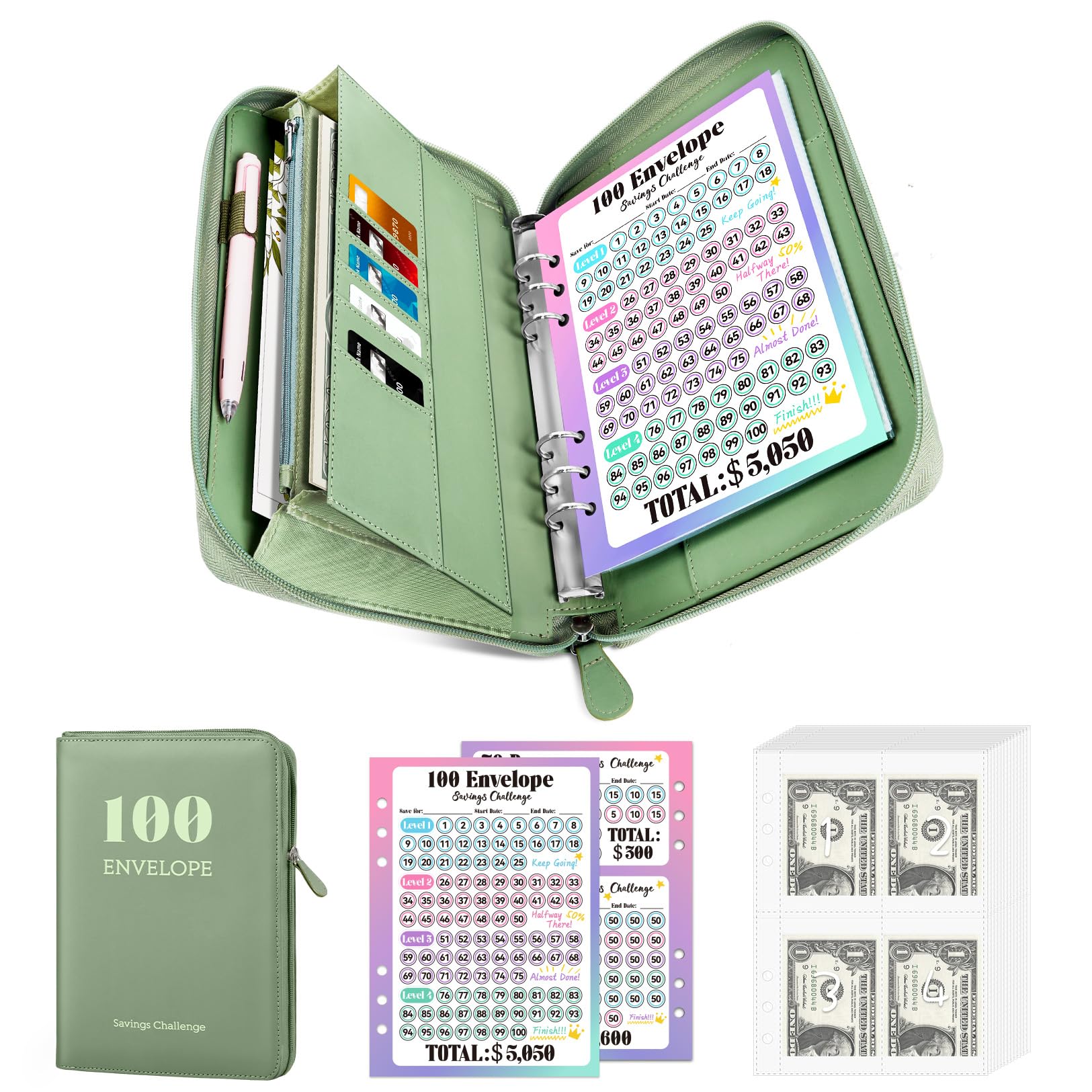 Sooez 100 Envelopes Money Saving Challenge, Savings Challenges Book with Envelopes & Challenge Tracker, Motivational Process to Save $5050, Money Saving Binder 100 Pocket Pre-numbered, Christmas Gifts