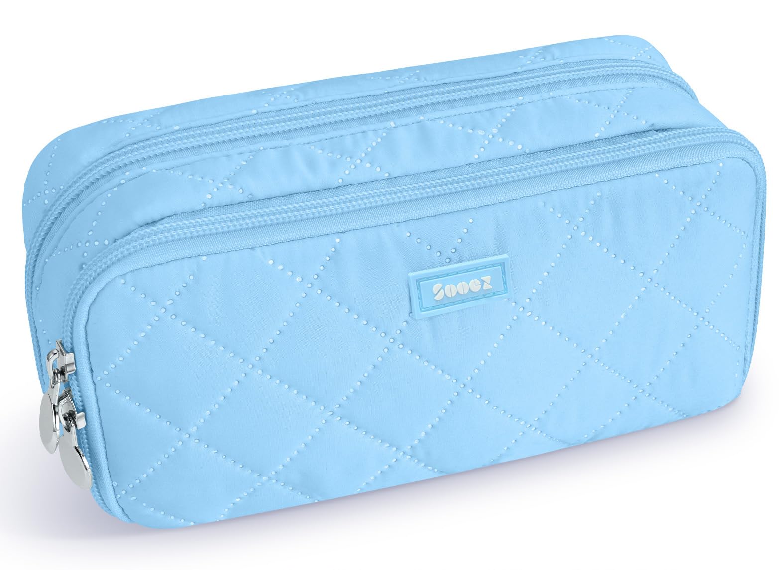 Sooez Large Pencil Case Pouch, Extra Big Pencil Bag with 8 Compartments, Pen Bag Wide Opening, Soft Quilted Pencil Pouch Organizer with Zipper, Portable Pencil Case for Teen Girls, Sky Blue