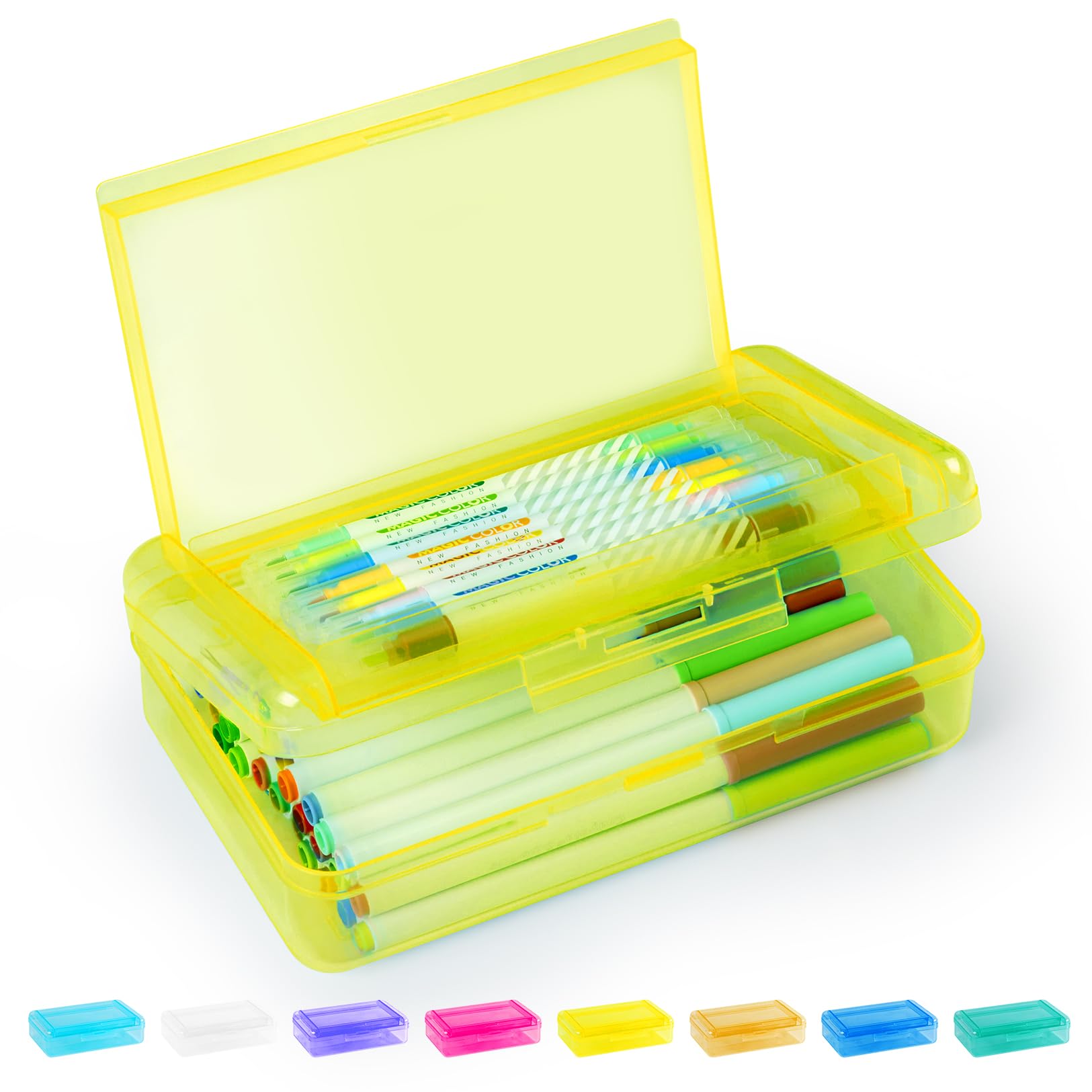 Sooez Double Layer Pencil Box, Large Hard Pencil Case Organizer, Clear Plastic Crayon Box for Girls and Boys, Colored Marker Organizer, Small Plastic Containers/Bins with Lids, Art Supply Storage
