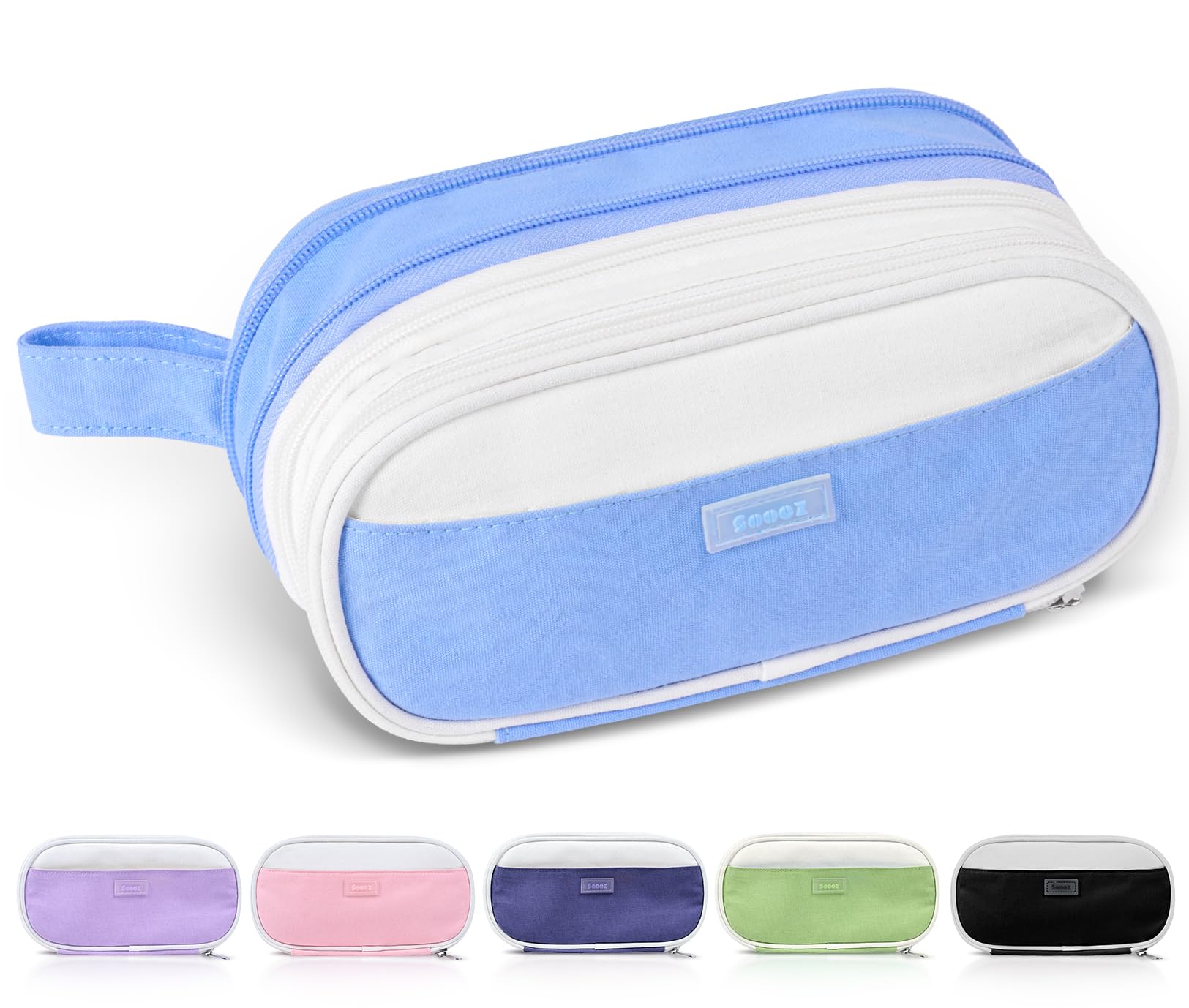 Sooez Large Pencil Case, Expandable Pencil Bag with 5 Compartments, Big Capacity Canvas Pencil Pouch Organizer with Zipper, Portable Stationery Pen Bag, Cute Aesthetic School Supplies For Teen Girls