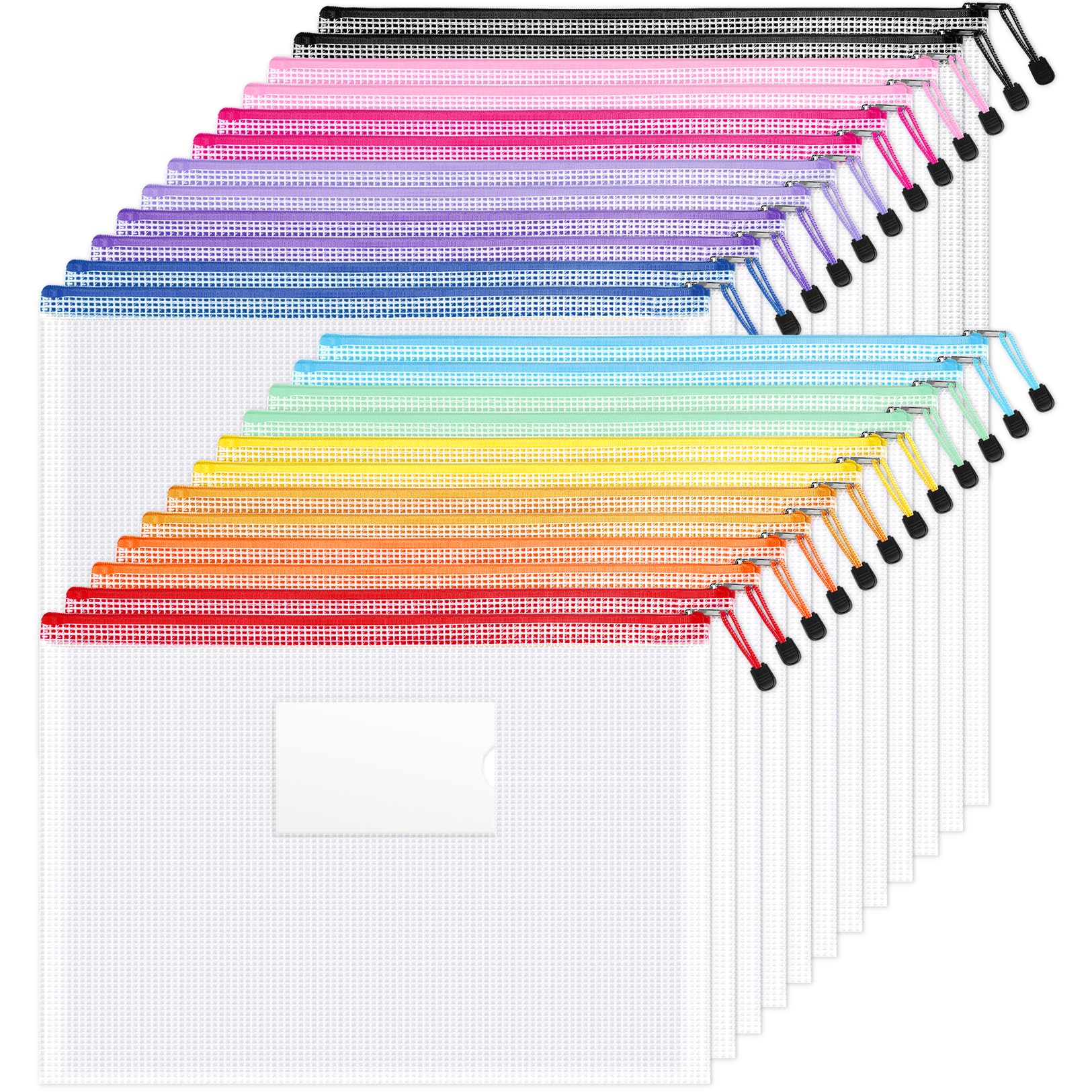 Sooez 24 Pack Super Large Mesh Zipper Pouch Bags, A3 (16.5×11.7 in) Storage Bags with Label Pocket, Reusable Zipper Pouches for Classroom Organization
